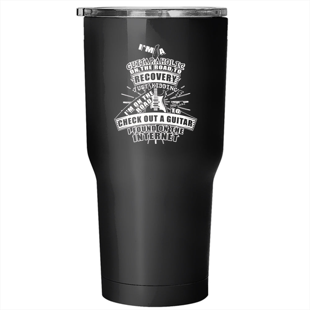 I'm A Guitaraholic On The Road Tumbler 30 oz Stainless Steel, Cool Guitarist Travel Mug