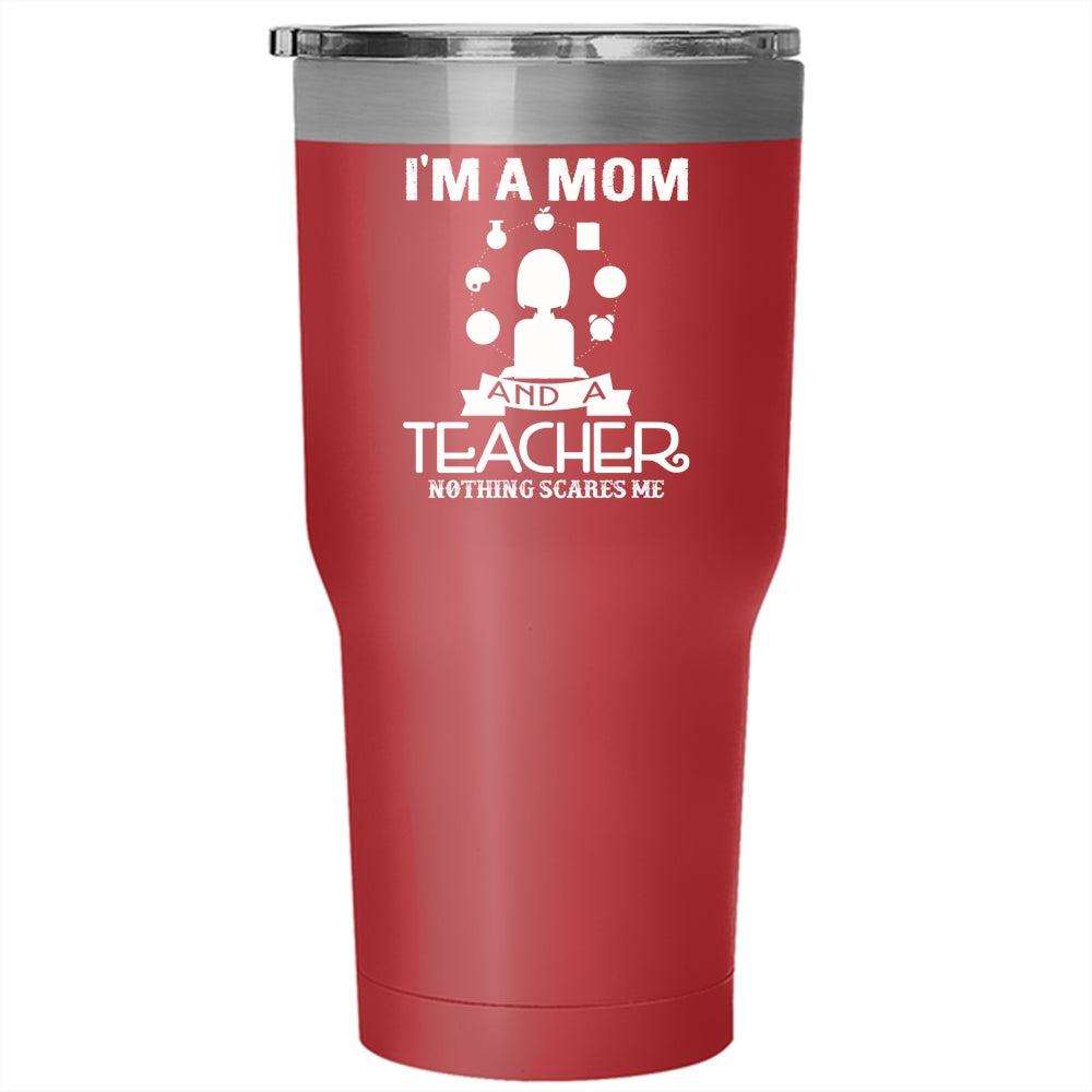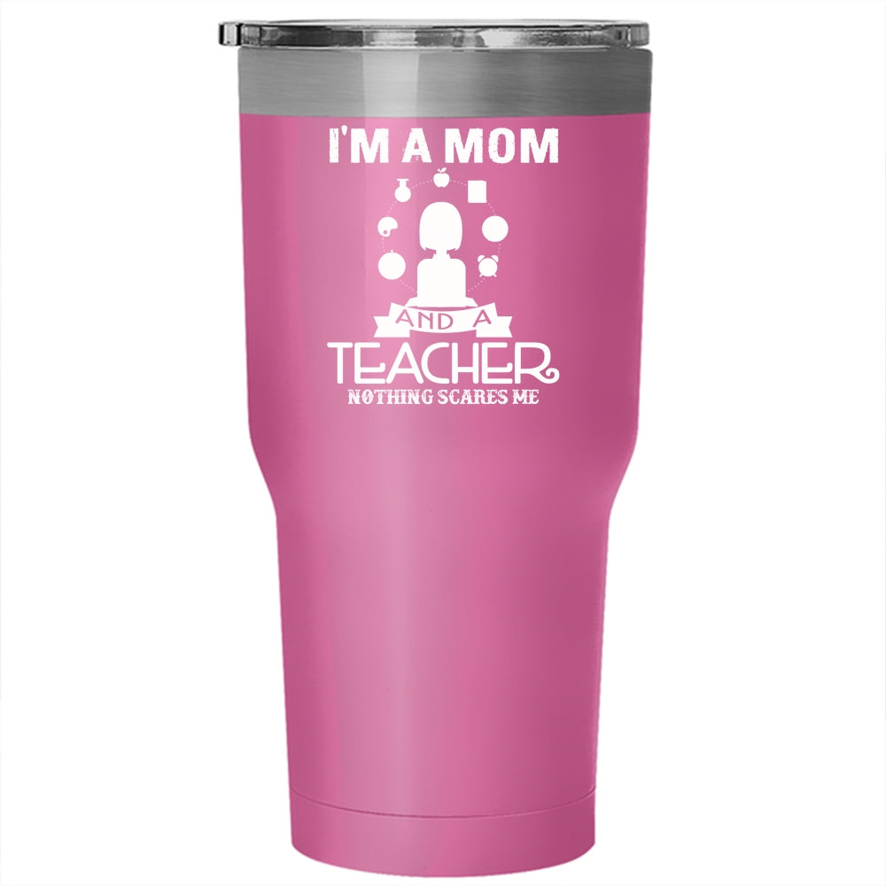 I'm A Mom And A Teacher Tumbler 30 oz Stainless Steel, Nothing Scares Me Travel Mug