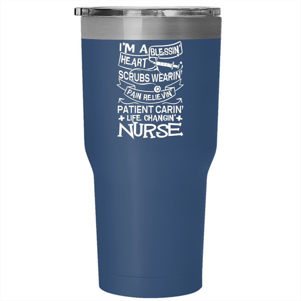 I'm A Nurse Tumbler 30 oz Stainless Steel, Blessing Heart Scrubs Wearing Travel Mug