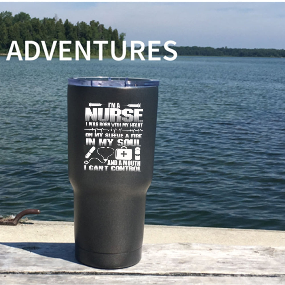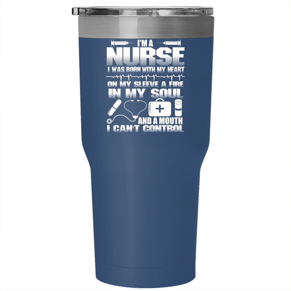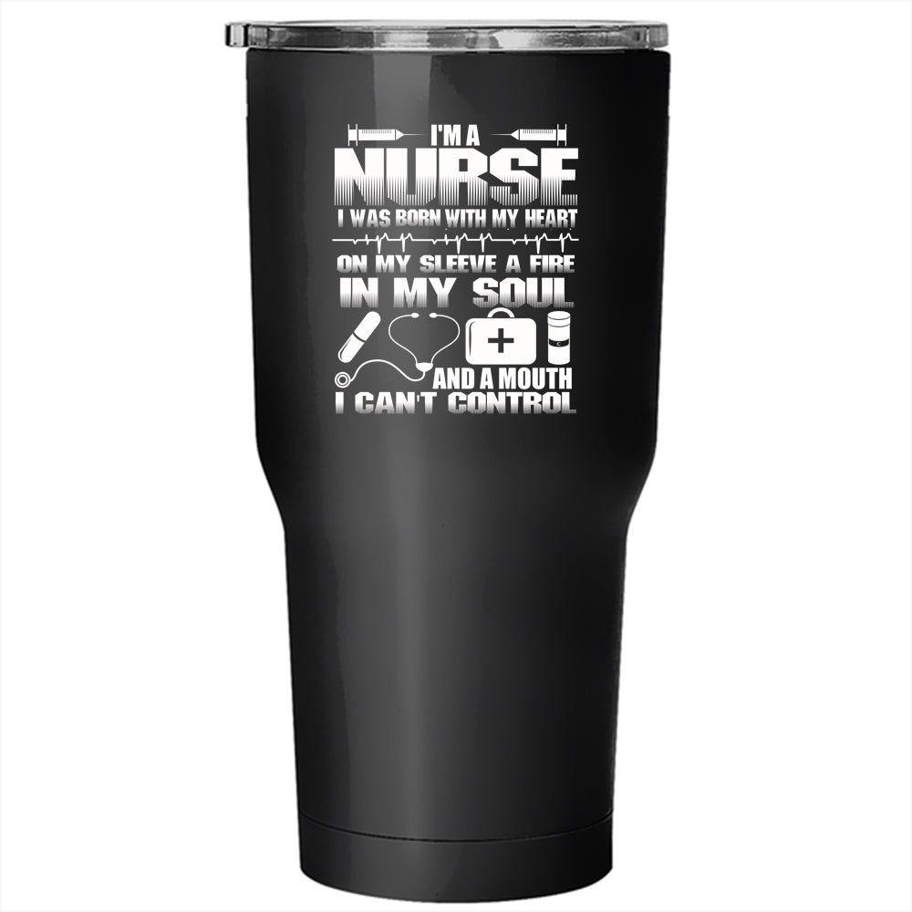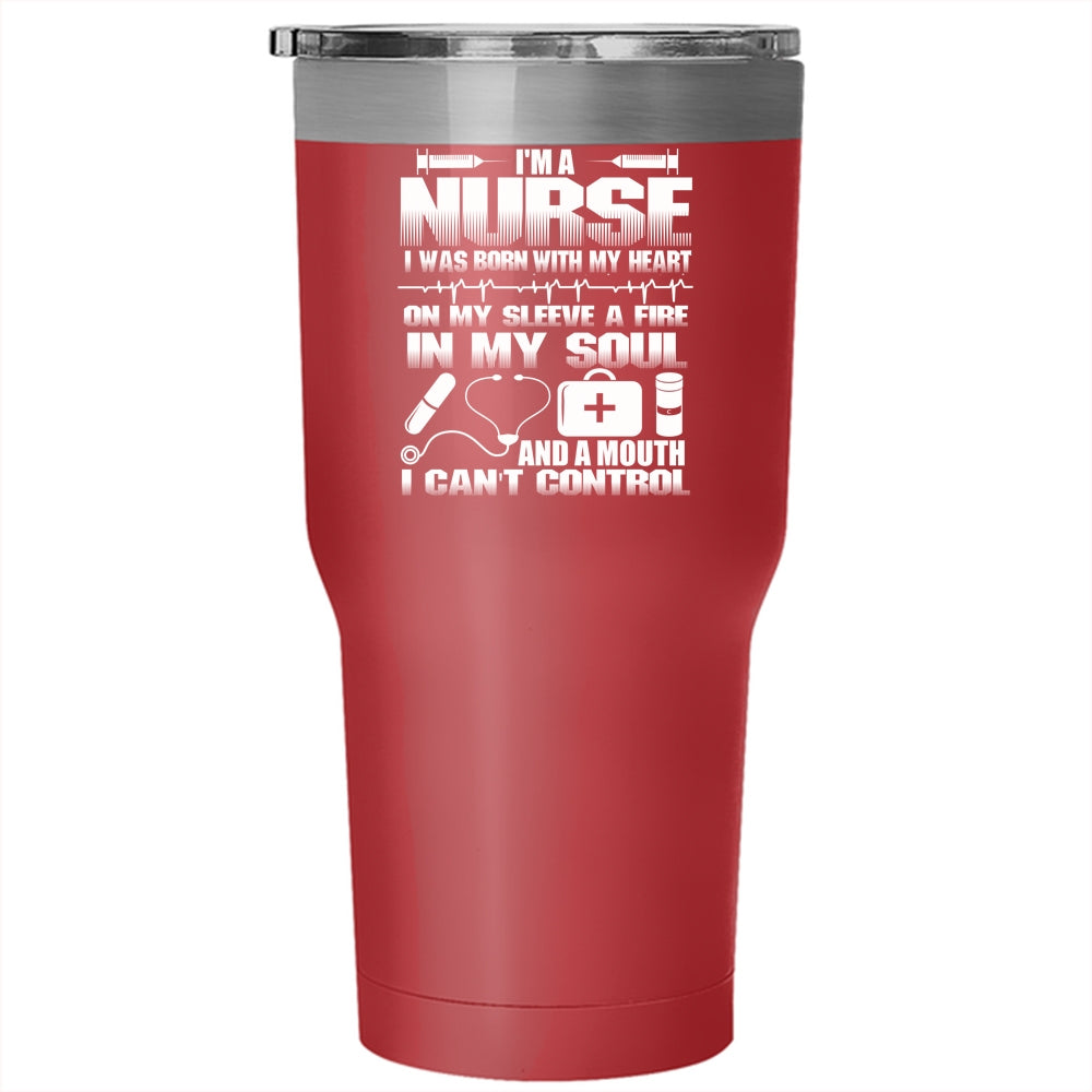I'm A Nurse Tumbler 30 oz Stainless Steel, I Was Born With My Heart On My Sleeve Travel Mug