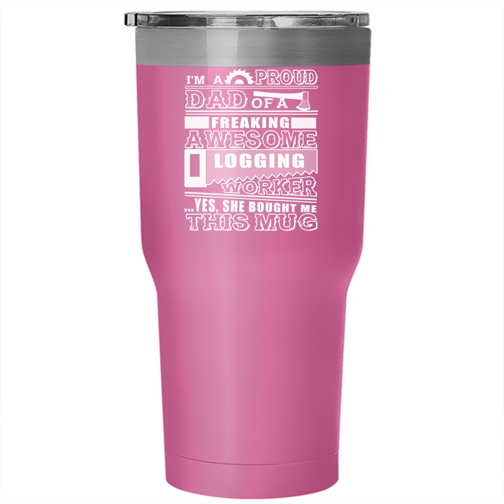 I'm A Proud Dad Of A Logging Worker Tumbler 30 oz Stainless Steel, Cool Logger's Dad Travel Mug
