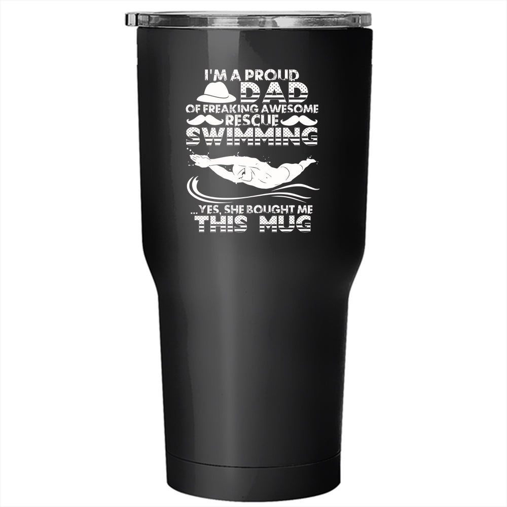 I'm A Proud Dad Of Rescue Swimming Tumbler 30 oz Stainless Steel, Cool Daddy Travel Mug