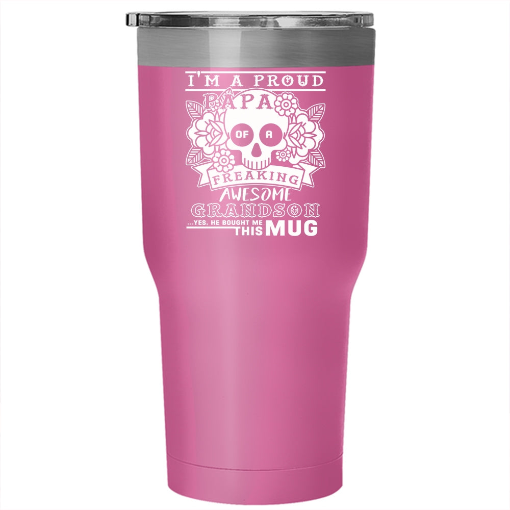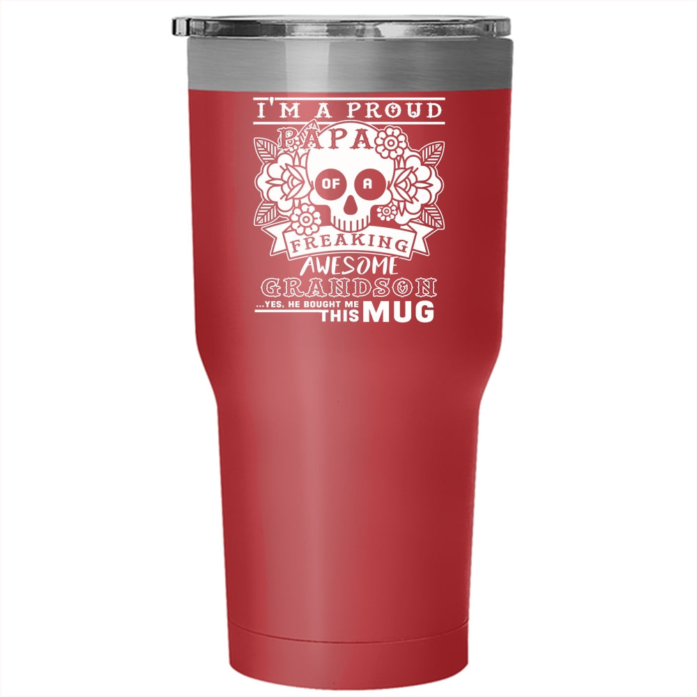 I'm A Proud Papa Of A Grandson Tumbler 30 oz Stainless Steel, Awesome Papa Travel Mug