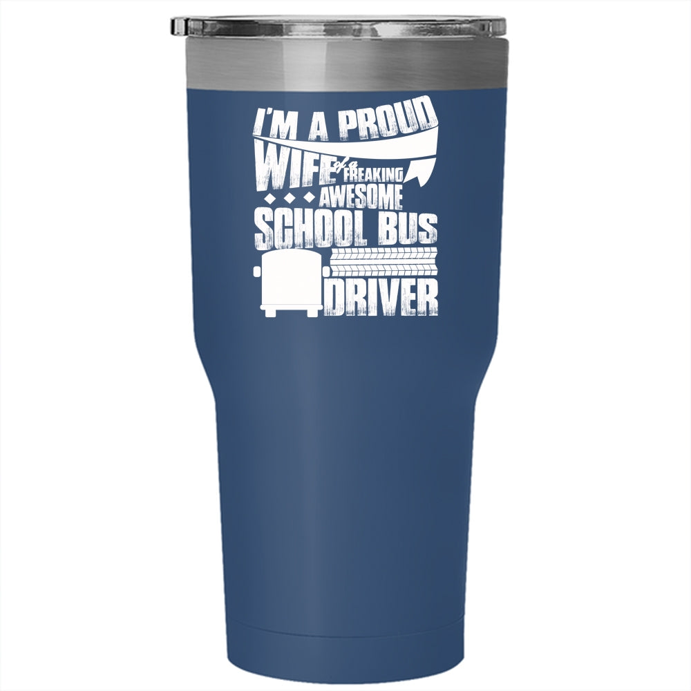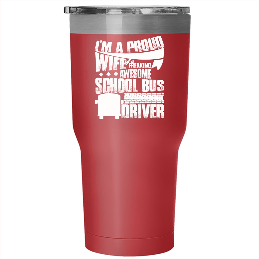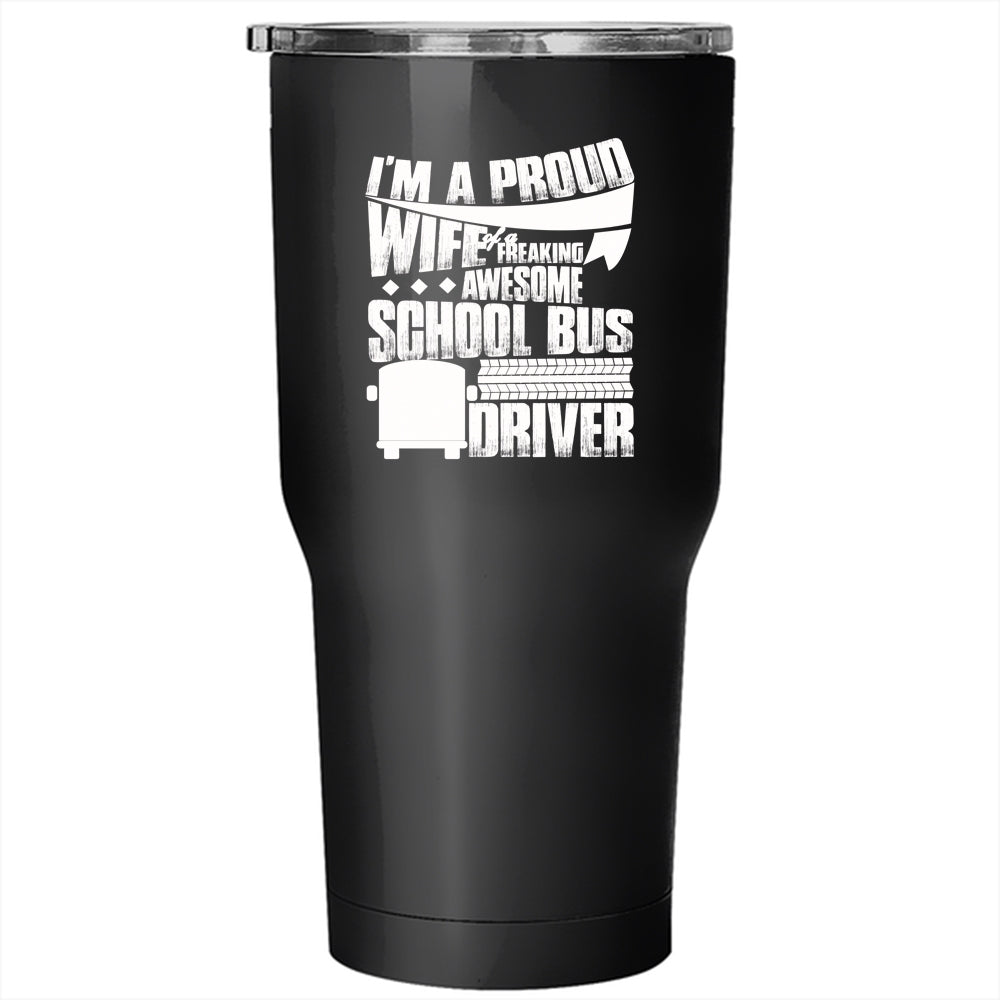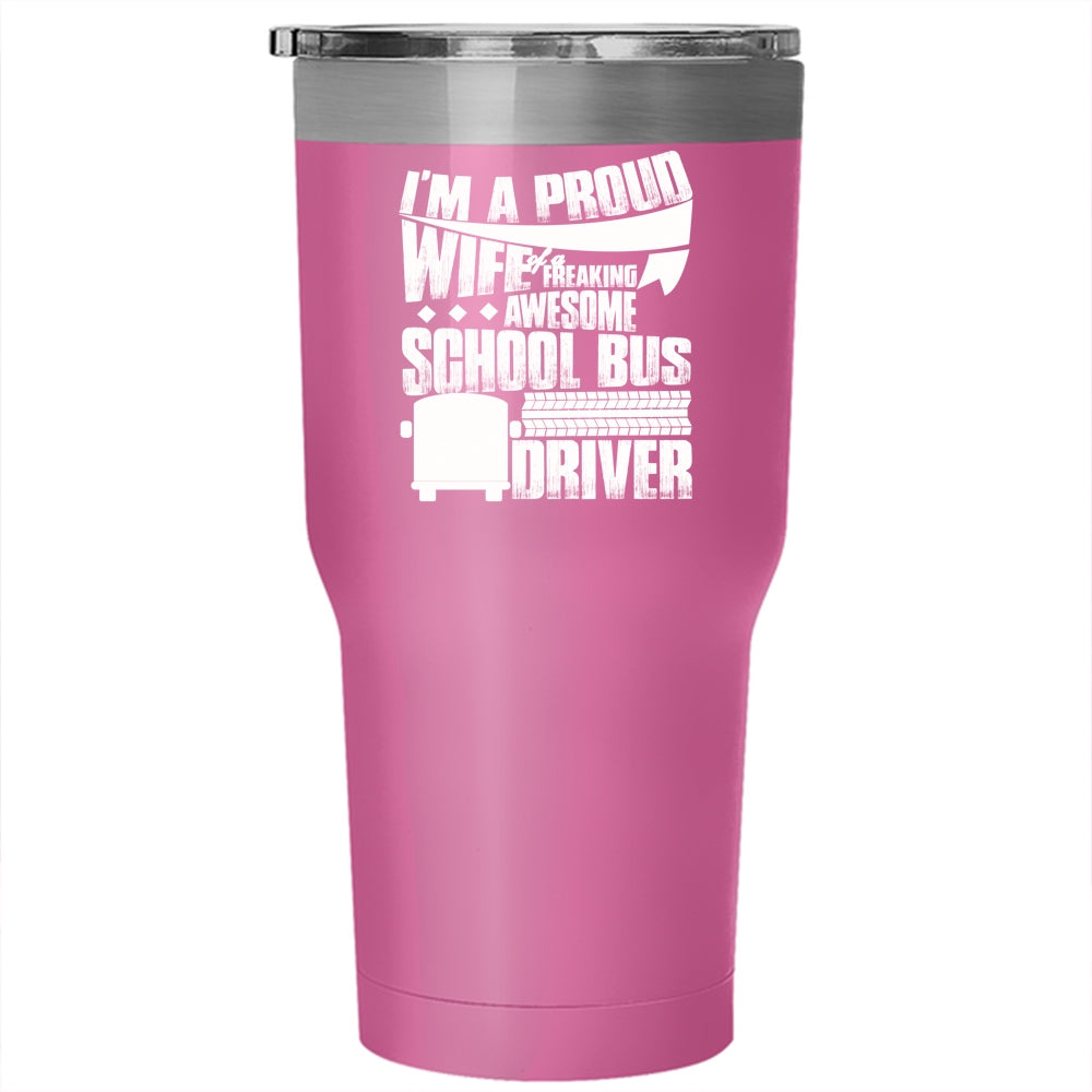 I'm A Proud Wife Of A School Bus Driver Tumbler 30 oz Stainless Steel, Pretty Wife Travel Mug