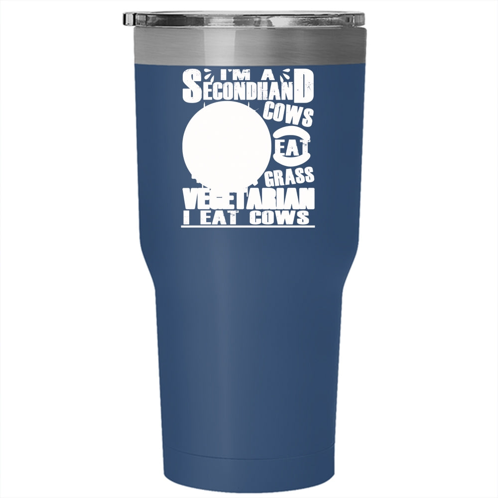 I'm A Secondhand Vegetarian Tumbler 30 oz Stainless Steel, Cows Eat Grass Travel Mug