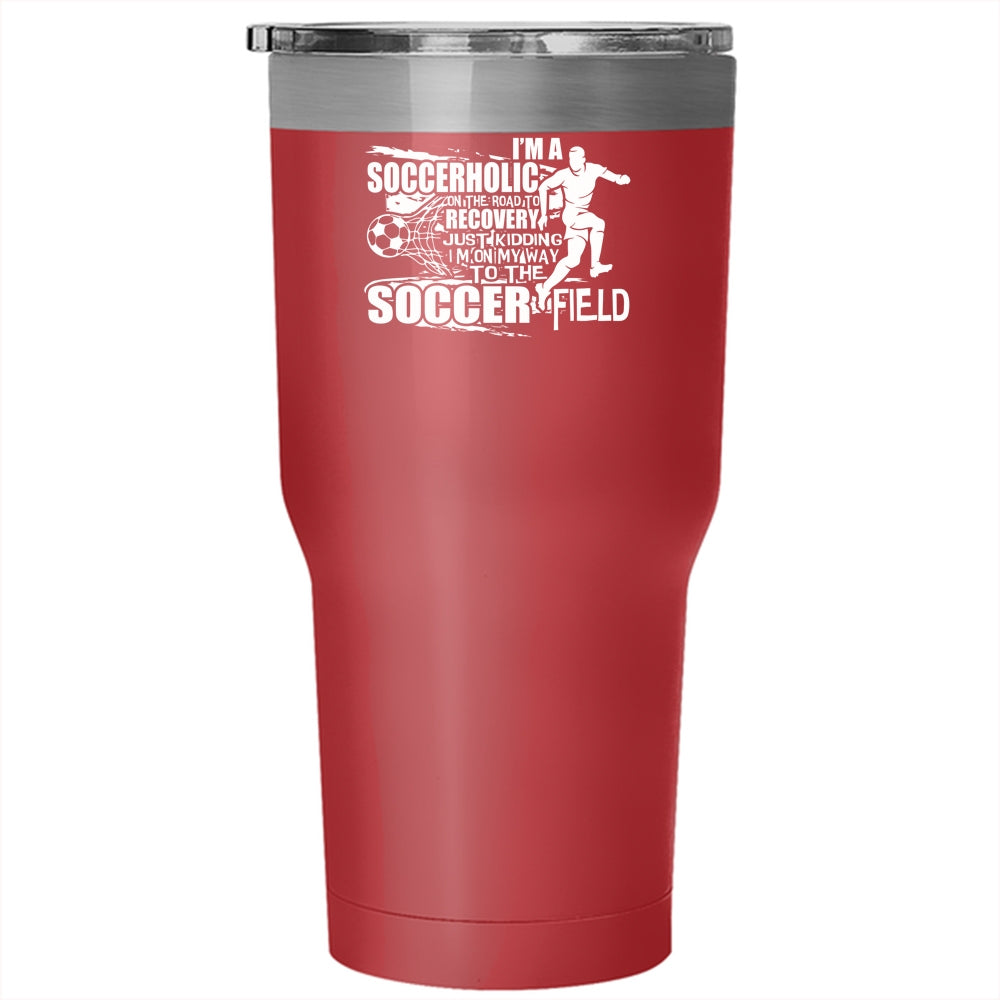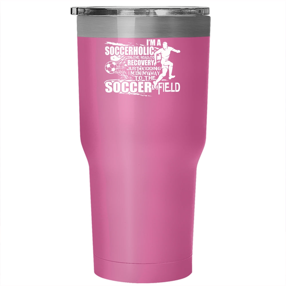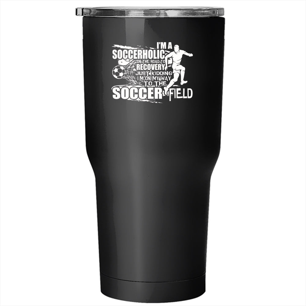 I'm A Soccerholic Tumbler 30 oz Stainless Steel, I'm On My Way To The Soccer Field Travel Mug