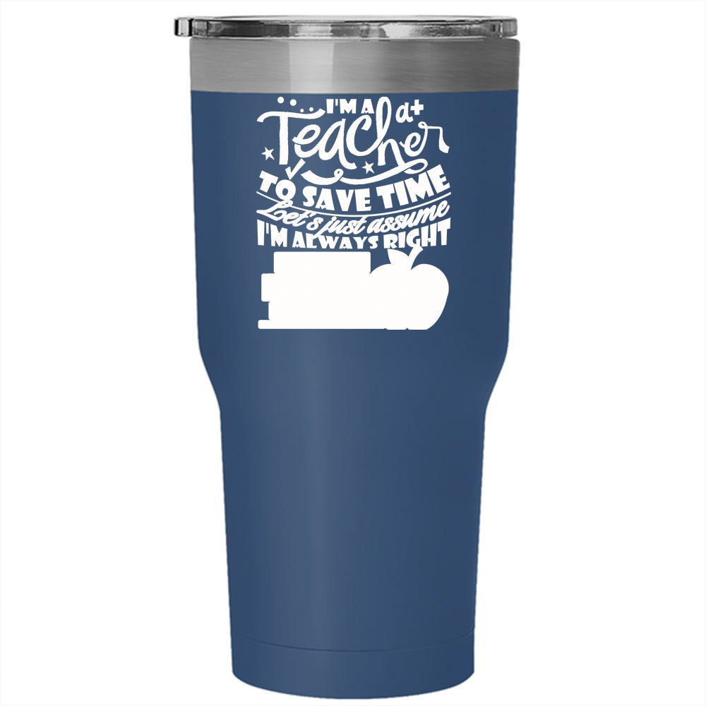 I'm A Teacher To Save Time Tumbler 30 oz Stainless Steel, Cute Teacher Travel Mug