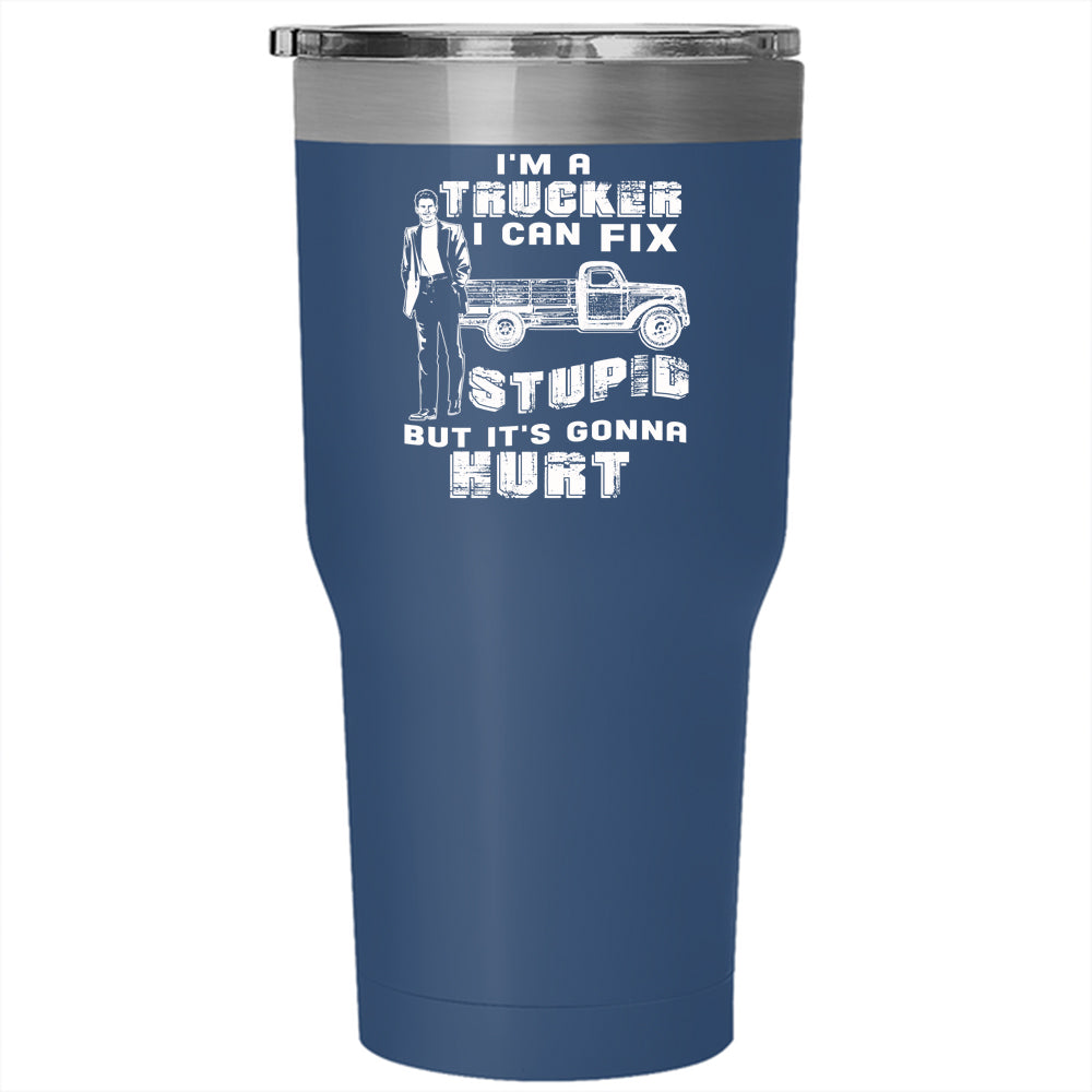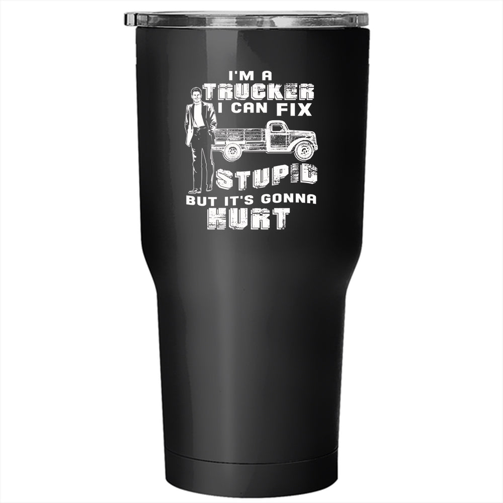 I'm A Trucker Tumbler 30 oz Stainless Steel, I Can Fix Stupid Travel Mug