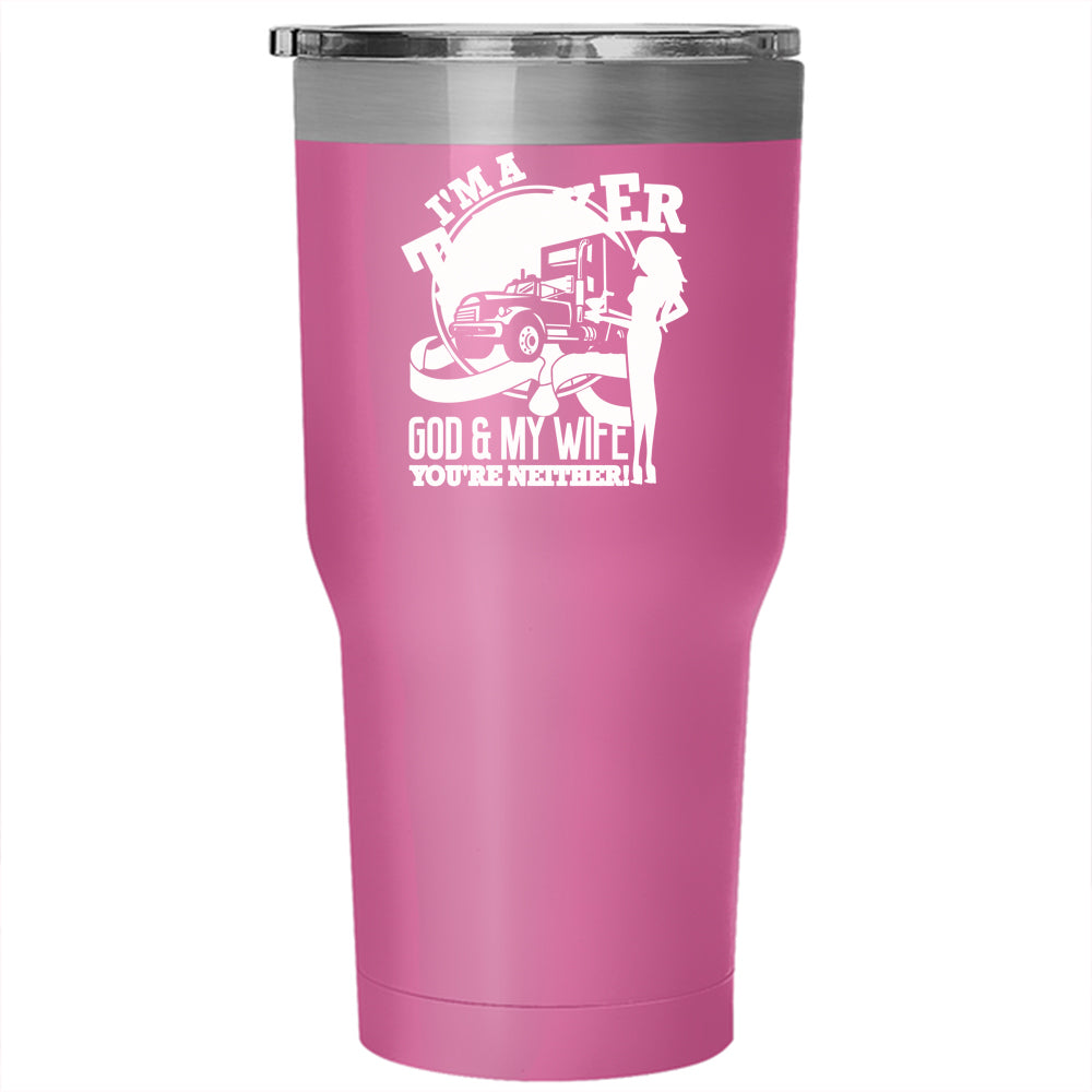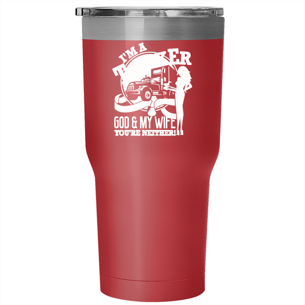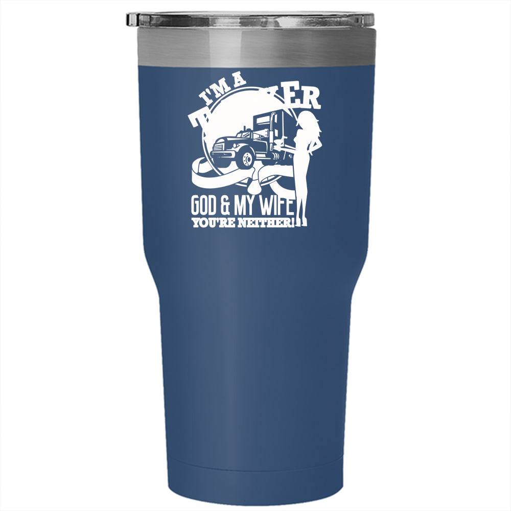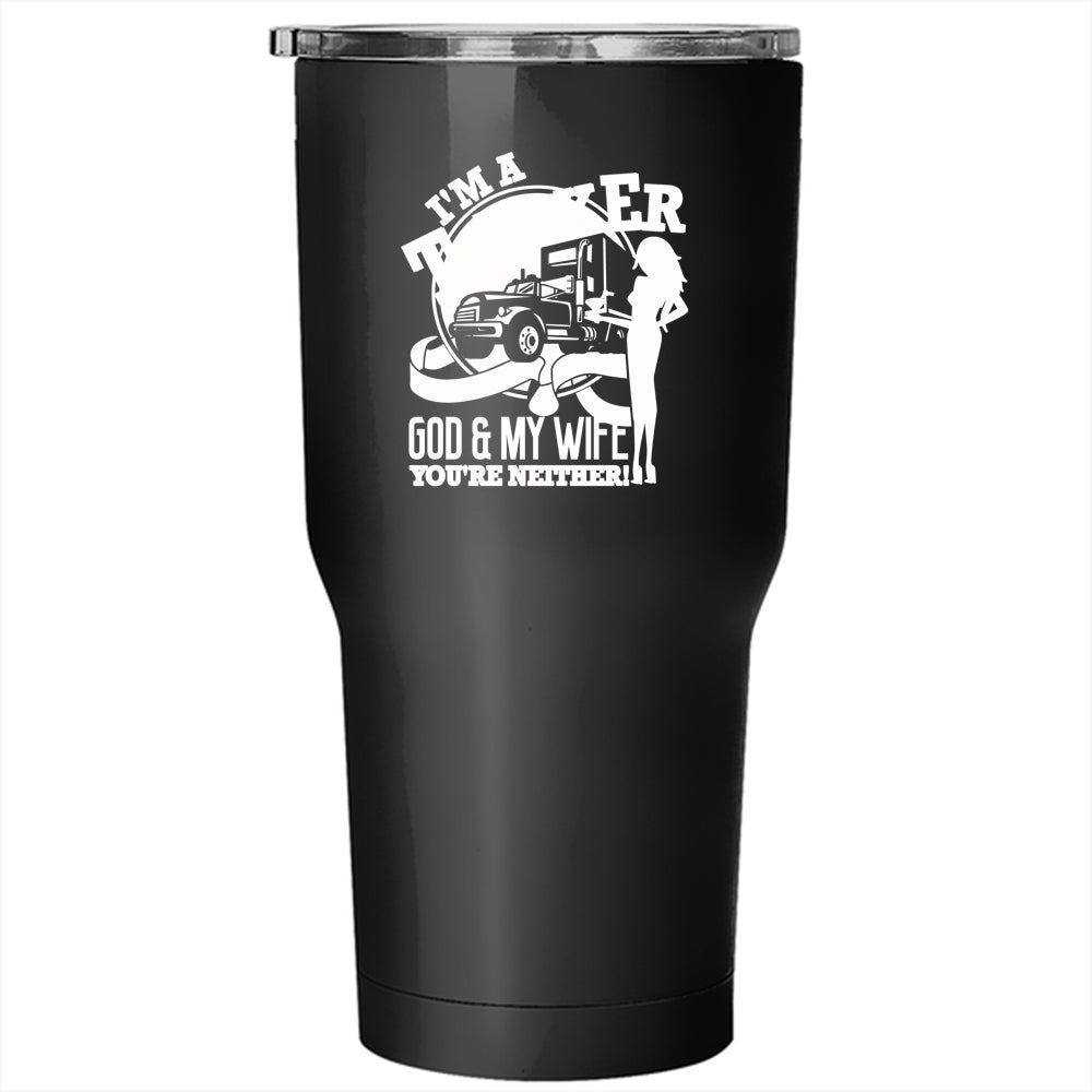 I'm A Trucker Tumbler 30 oz Stainless Steel, I Only Fear God And My Wife Travel Mug
