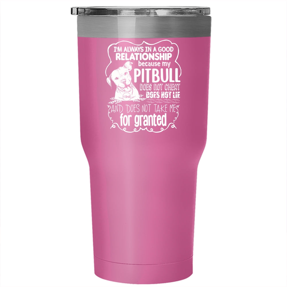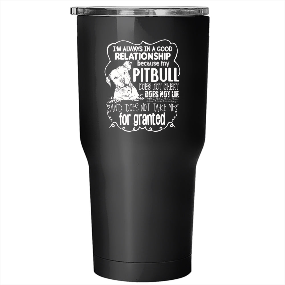 I'm Always In A Good Relationship Tumbler 30 oz Stainless Steel, My Pitbull Does Not Cheat Travel Mug