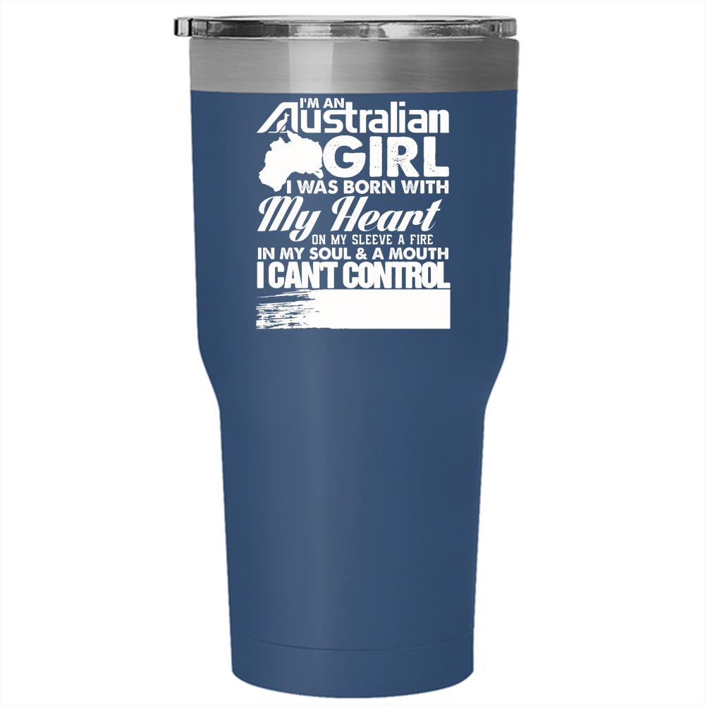 I'm An Australian Girl Tumbler 30 oz Stainless Steel, I Was Born With My Heart Travel Mug