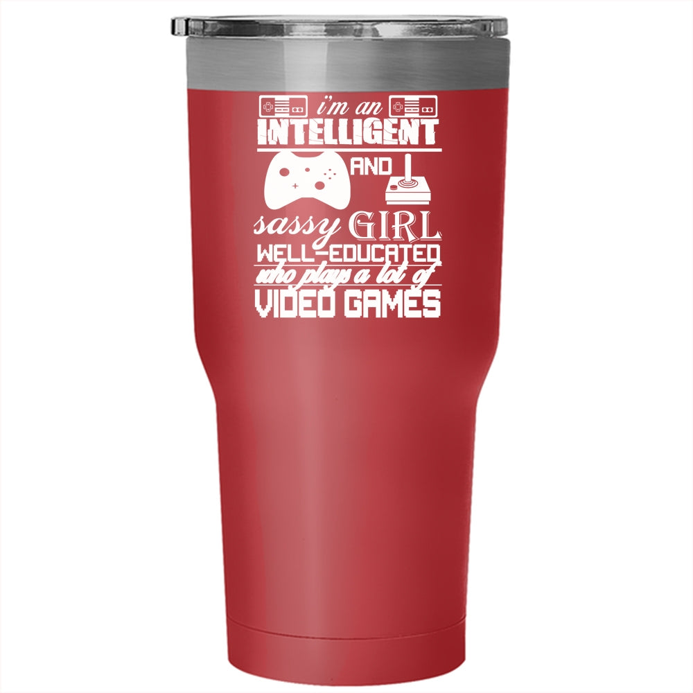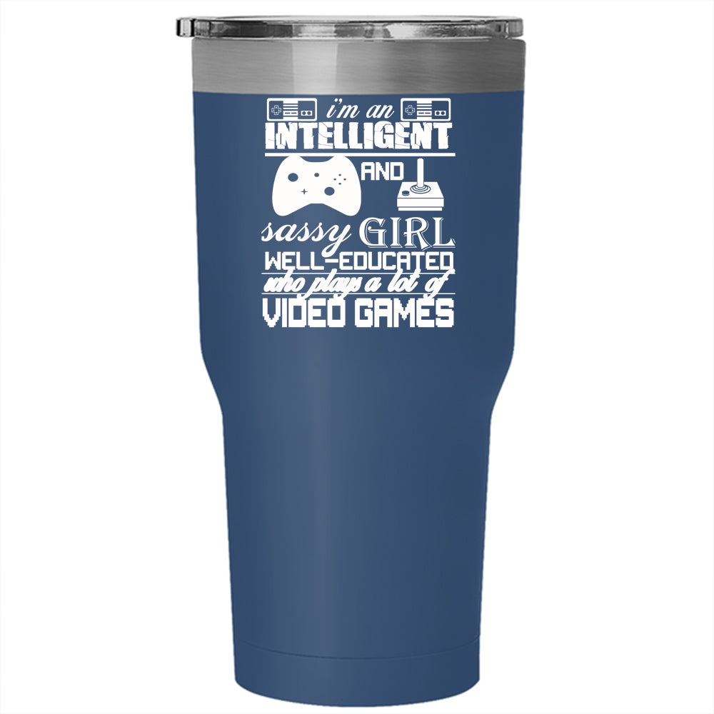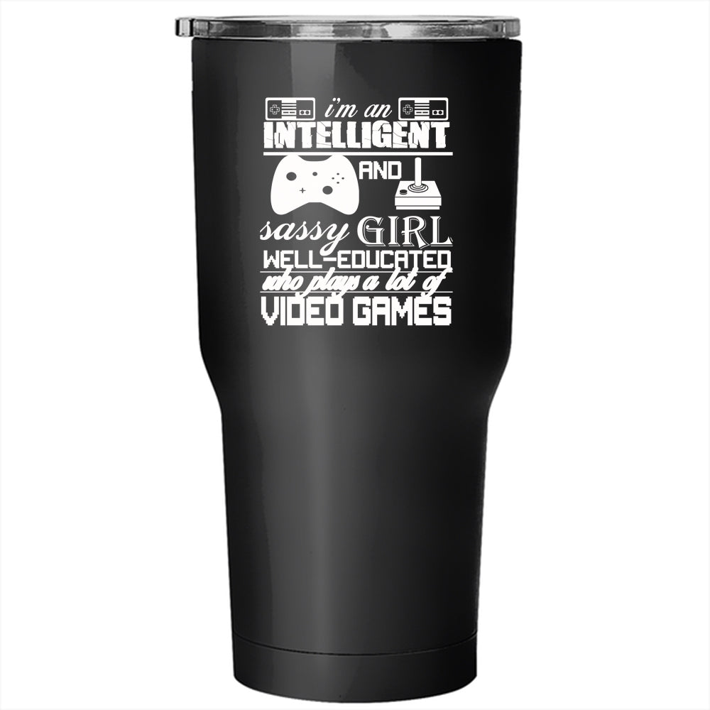 I'm An Intelligent And Girl Tumbler 30 oz Stainless Steel, Plays A Lot Of Video Games Travel Mug