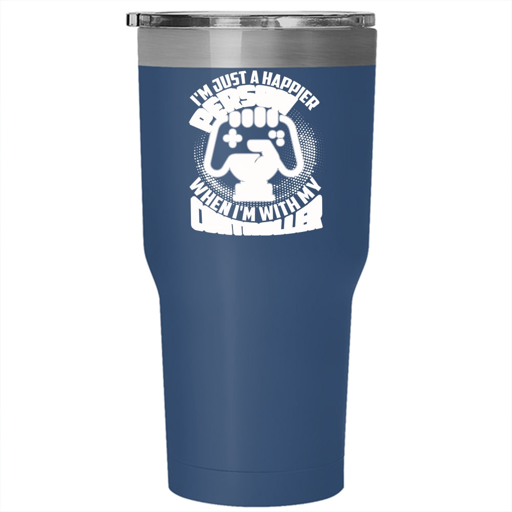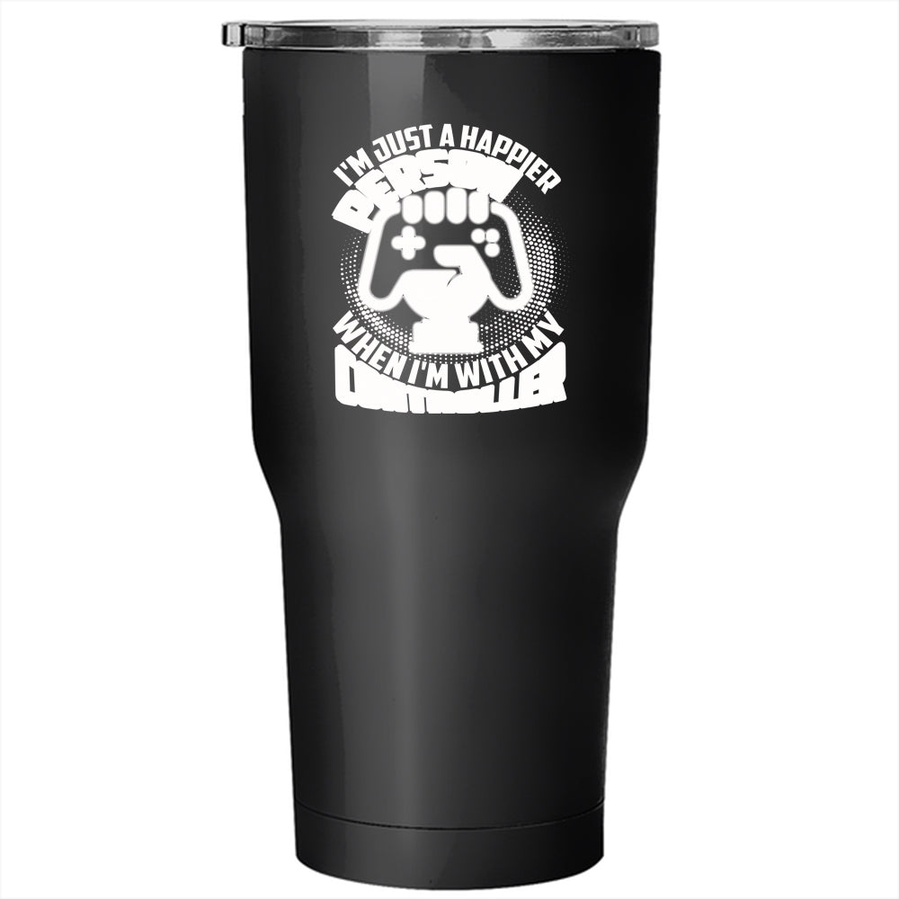 I'm Just A Happier Person Tumbler 30 oz Stainless Steel, When I'm With My Controller Travel Mug