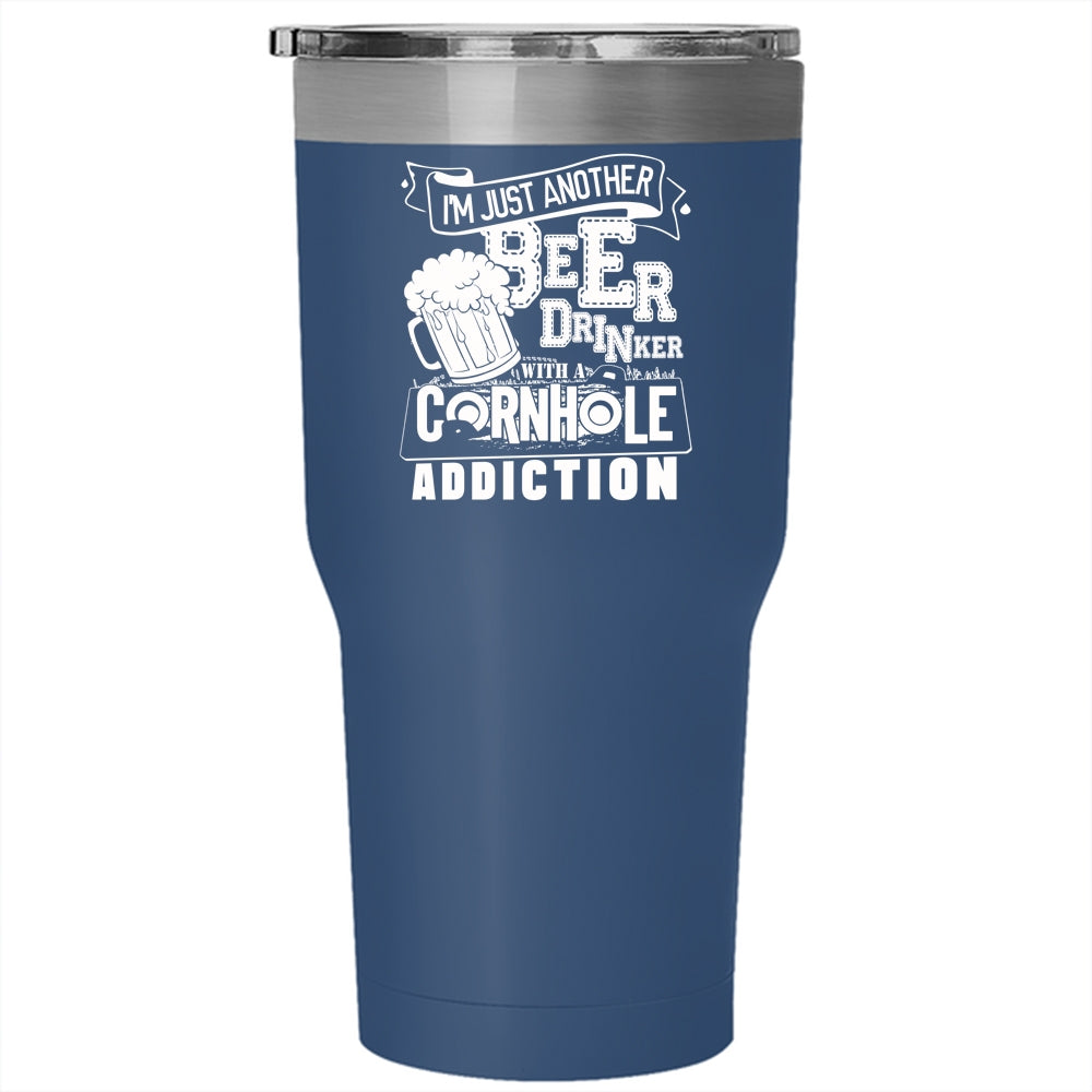 I'm Just Another Beer Drinker Tumbler 30 oz Stainless Steel, A Cornhole Addiction Travel Mug