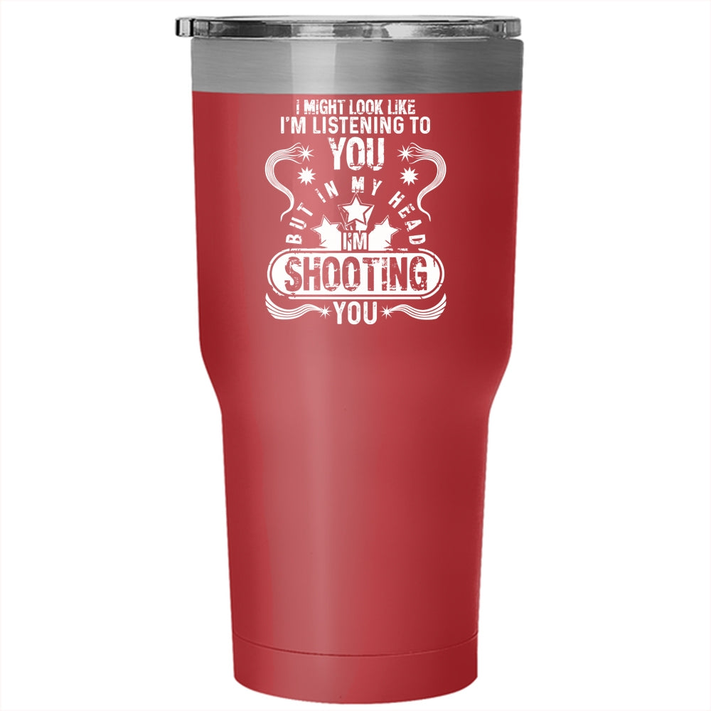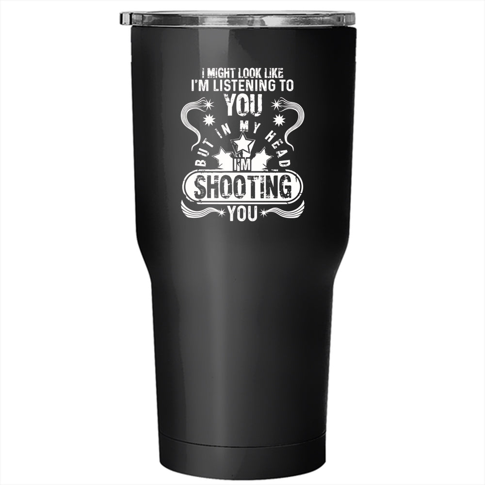 I'm Listening To You Tumbler 30 oz Stainless Steel, In My Head I'm Shooting Travel Mug