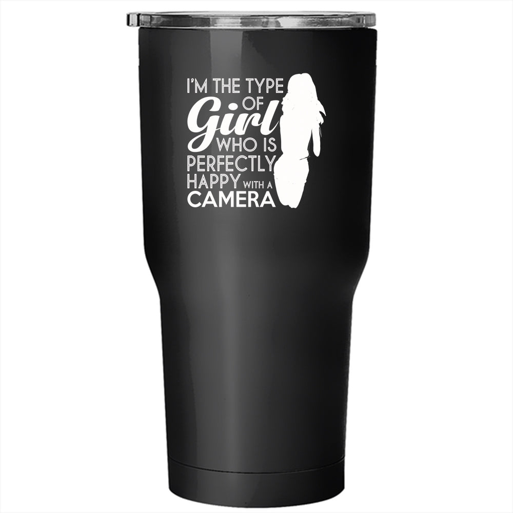 I'm Perfectly Happy With A Camera Tumbler 30 oz Stainless Steel, Cool Photographer Travel Mug