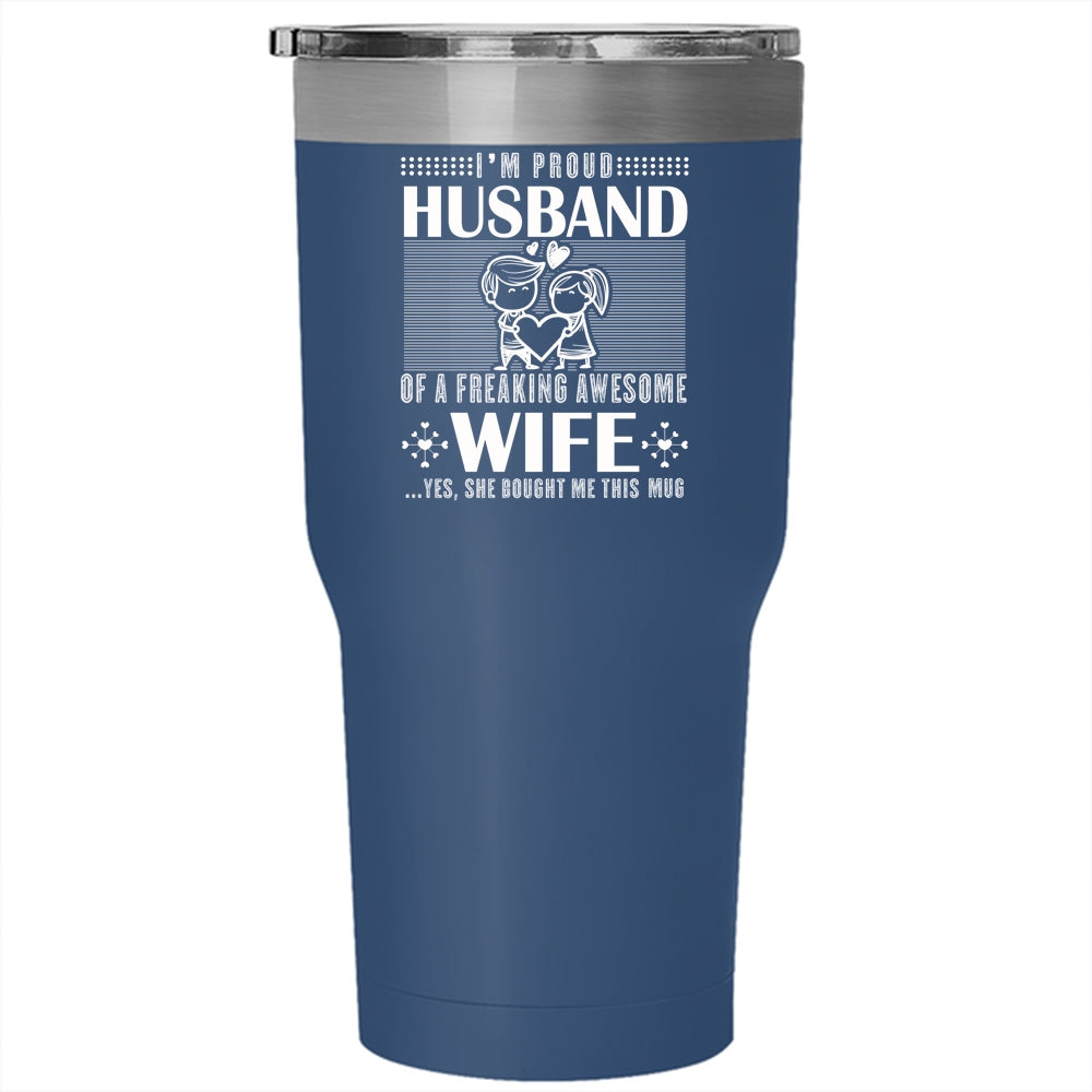 I'm Proud Husband Of An Awesome Wife Tumbler 30 oz Stainless Steel, Cute Love Travel Mug