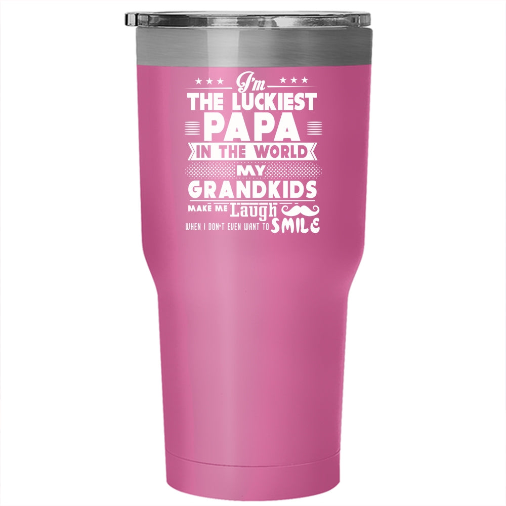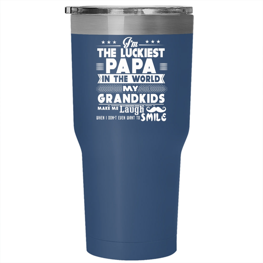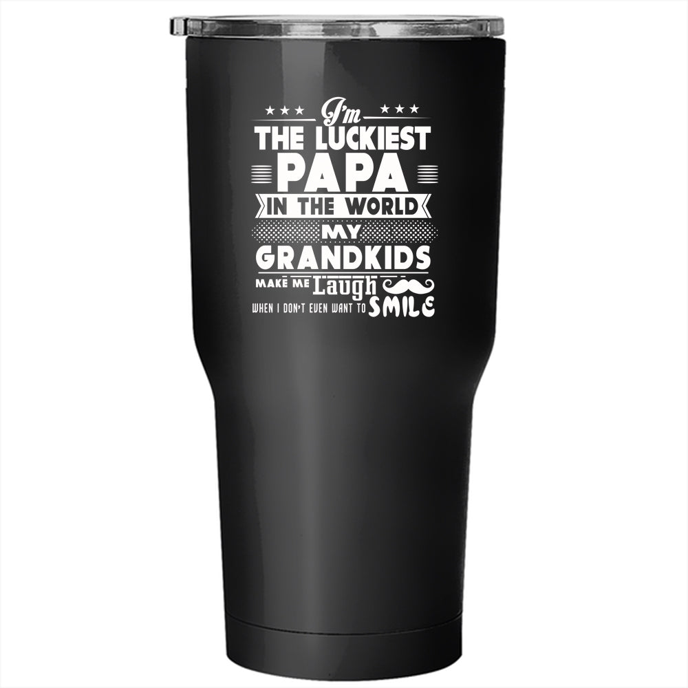 I'm The Luckiest Papa In The World Tumbler 30 oz Stainless Steel, My Grandkids Make Me Laugh Travel Mug