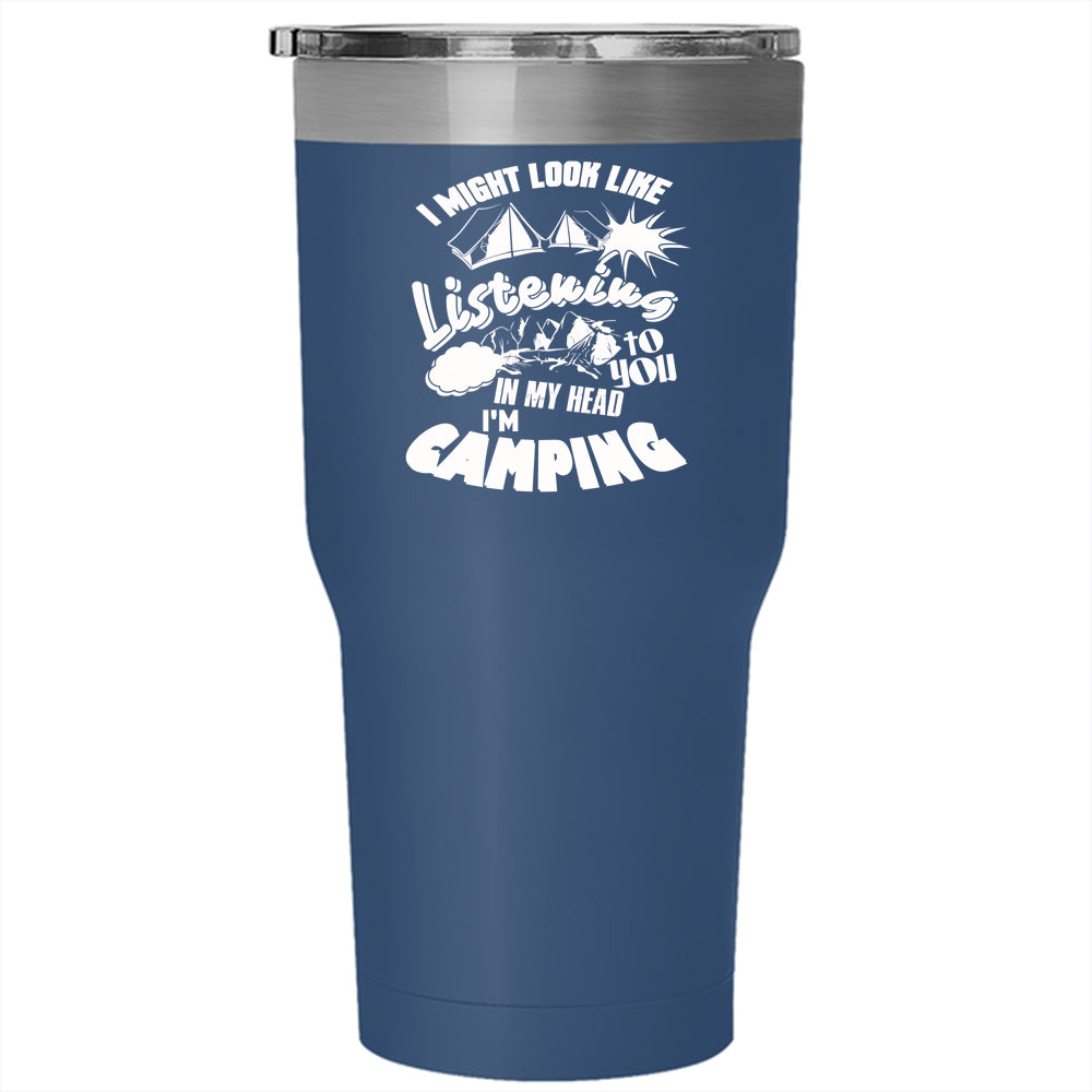 In My Head I'm Camping Tumbler 30 oz Stainless Steel, Cool Camping Travel Mug