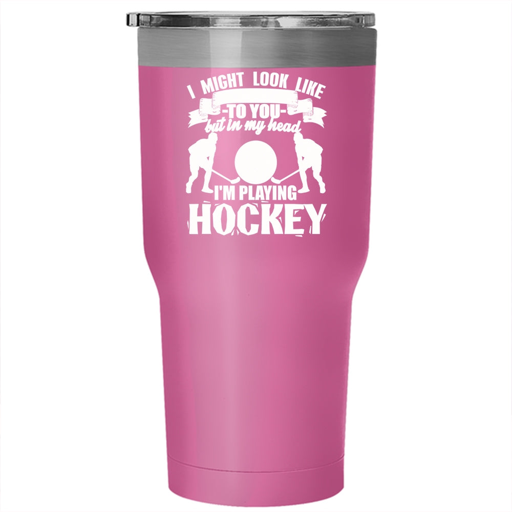 In My Head I'm Playing Hockey Tumbler 30 oz Stainless Steel, Playing Hockey Travel Mug