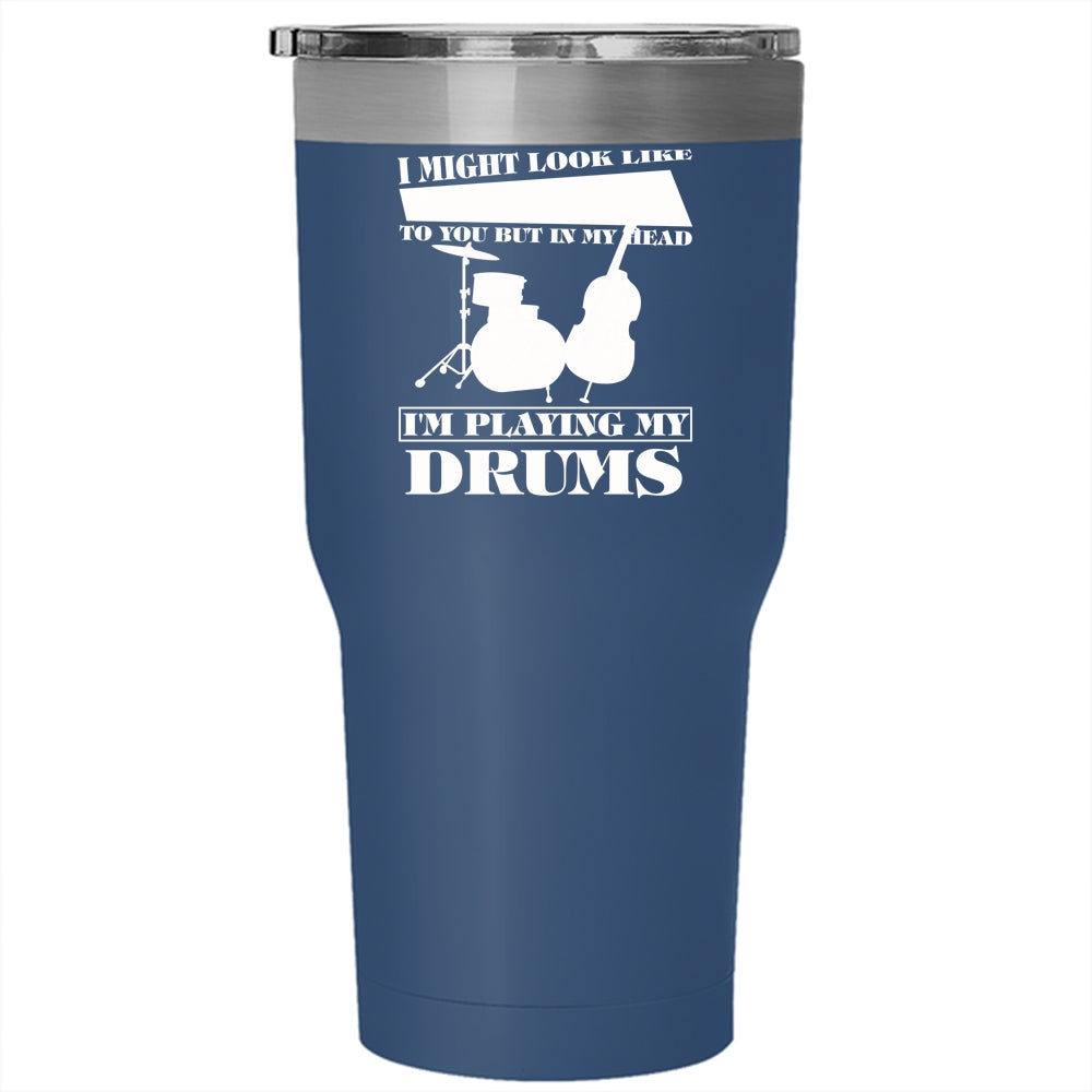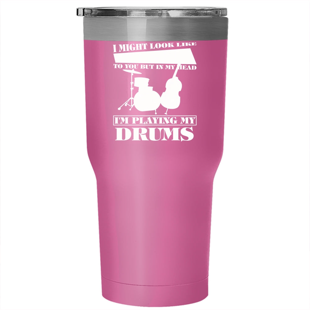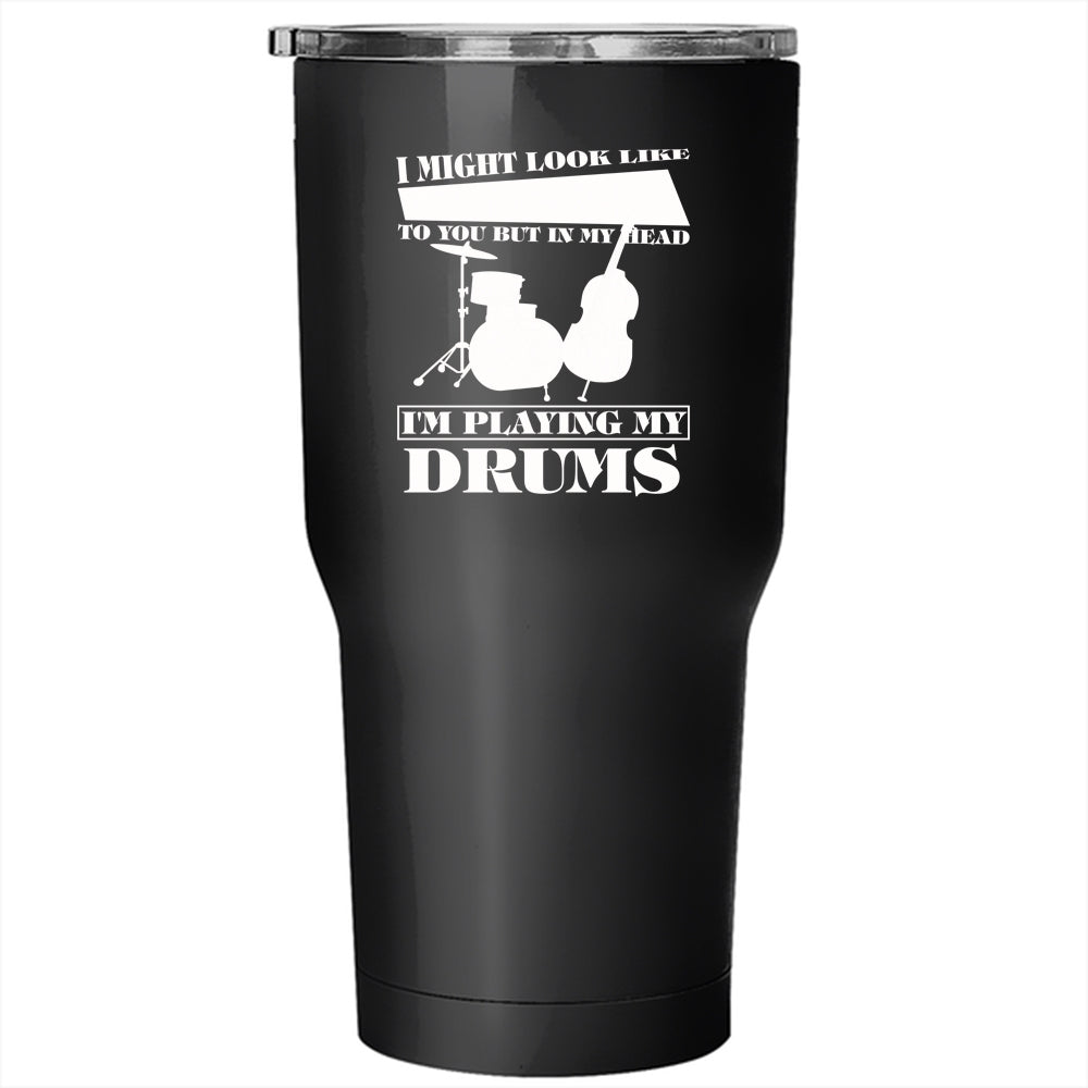 In My Head I'm Playing My Drums Tumbler 30 oz Stainless Steel, Cool Drummers Travel Mug