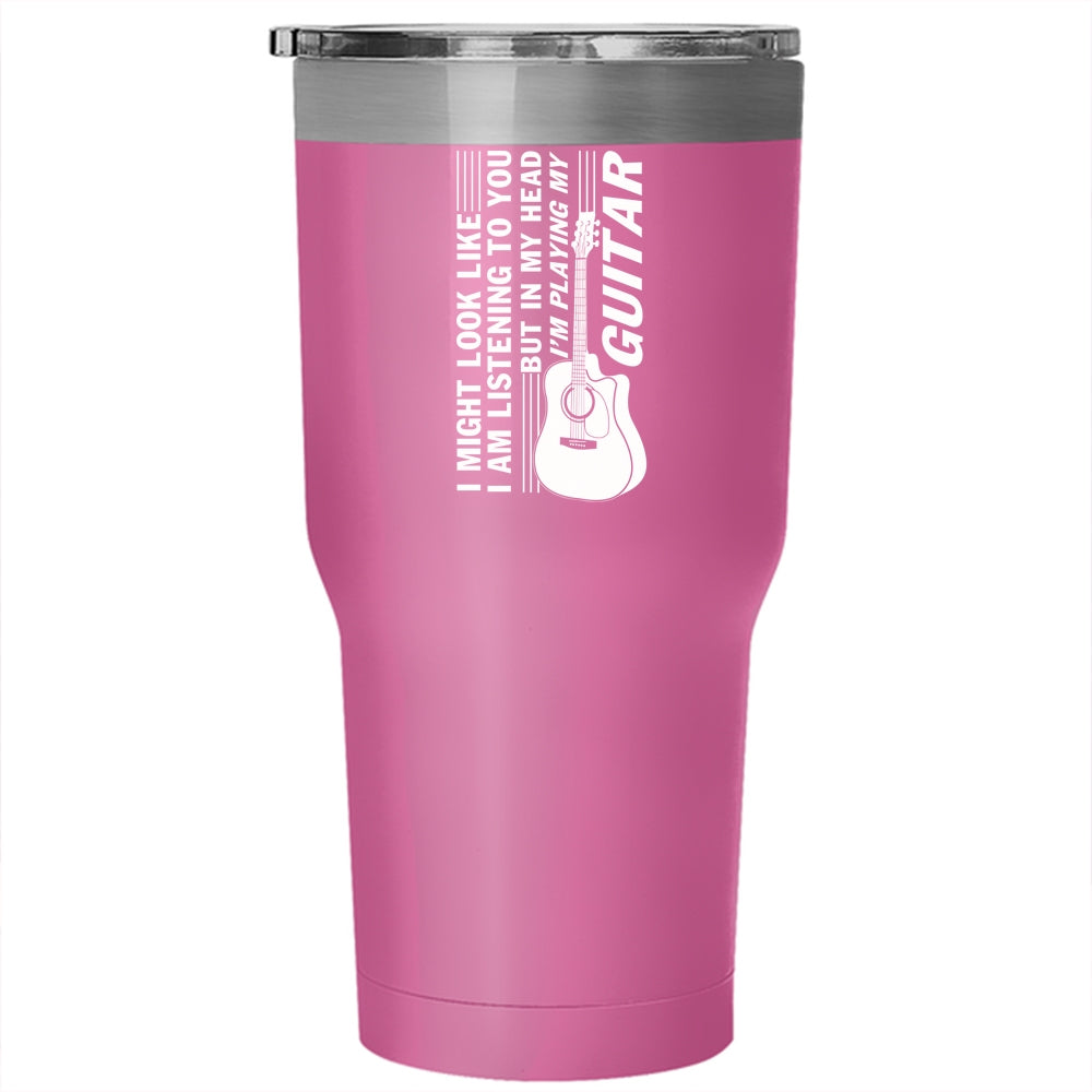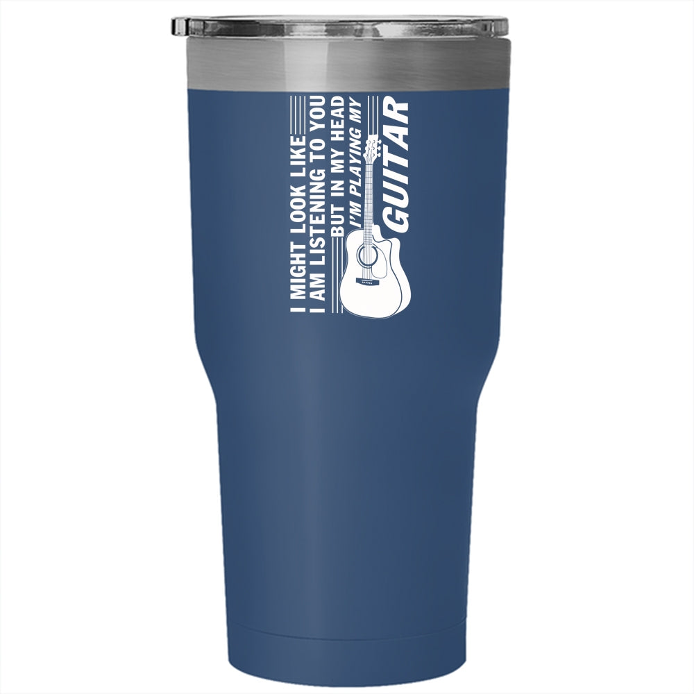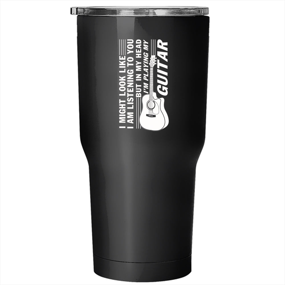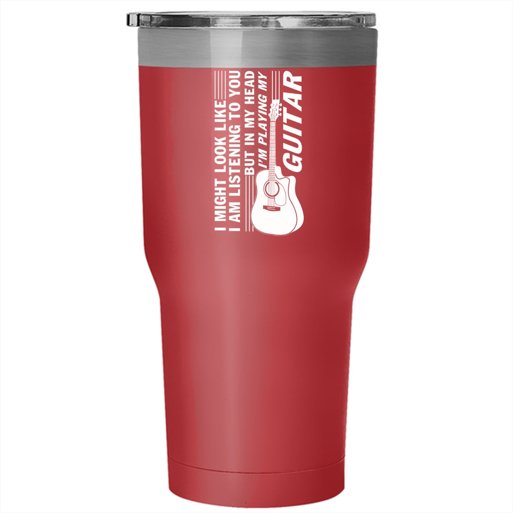 In My Head I'm Playing My Guitar Tumbler 30 oz Stainless Steel, Cool Guitarist Travel Mug