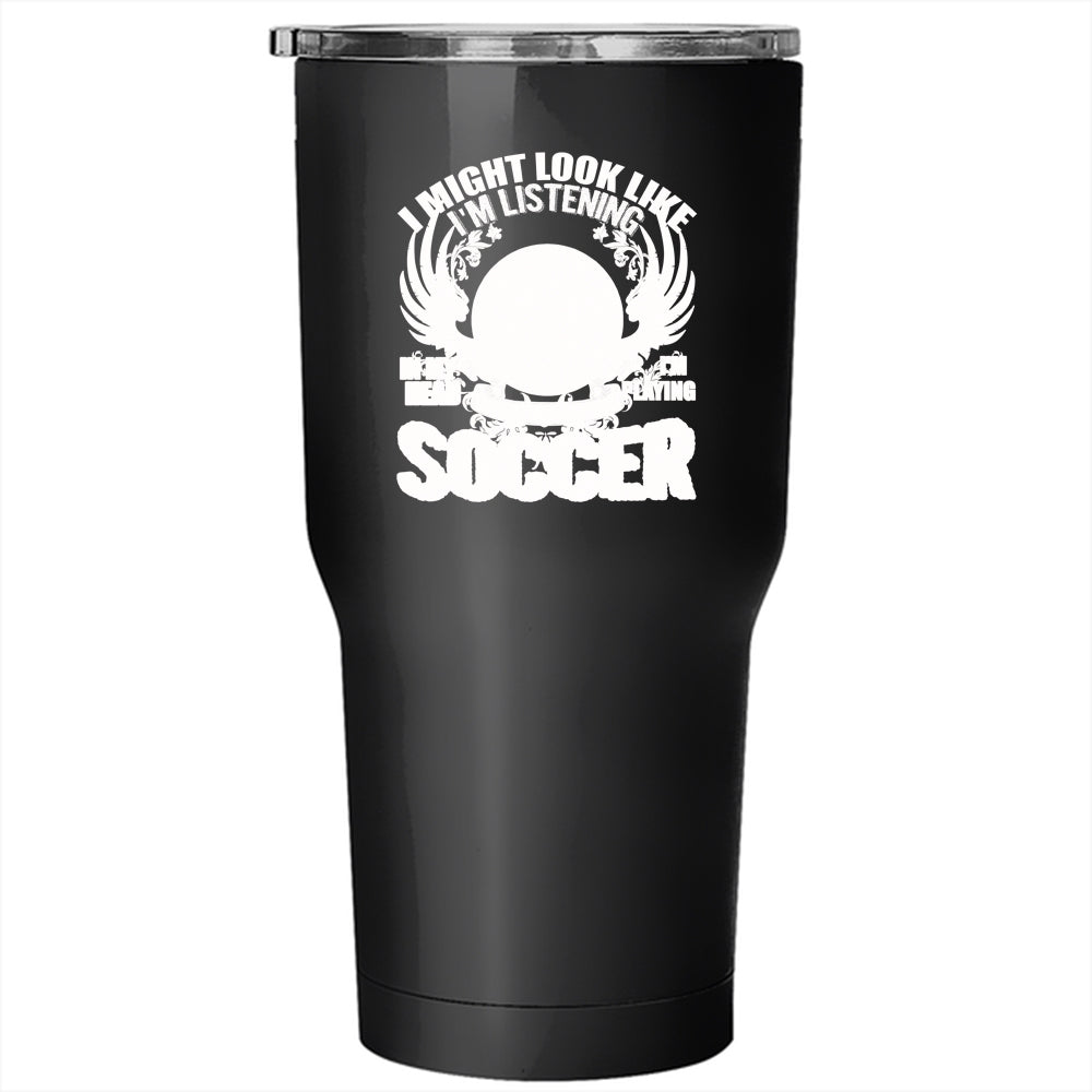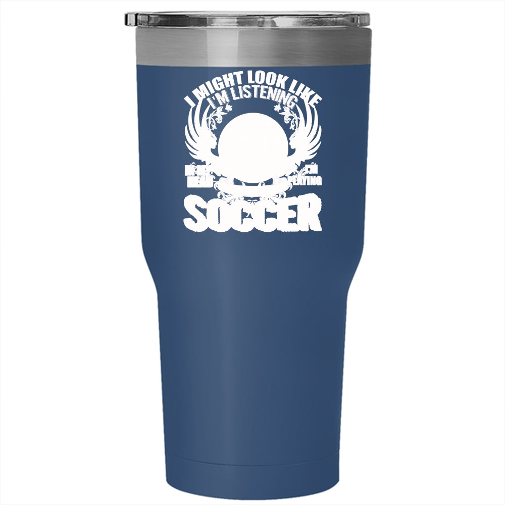 In My Head I'm Playing Soccer Tumbler 30 oz Stainless Steel, Funny Soccer Travel Mug