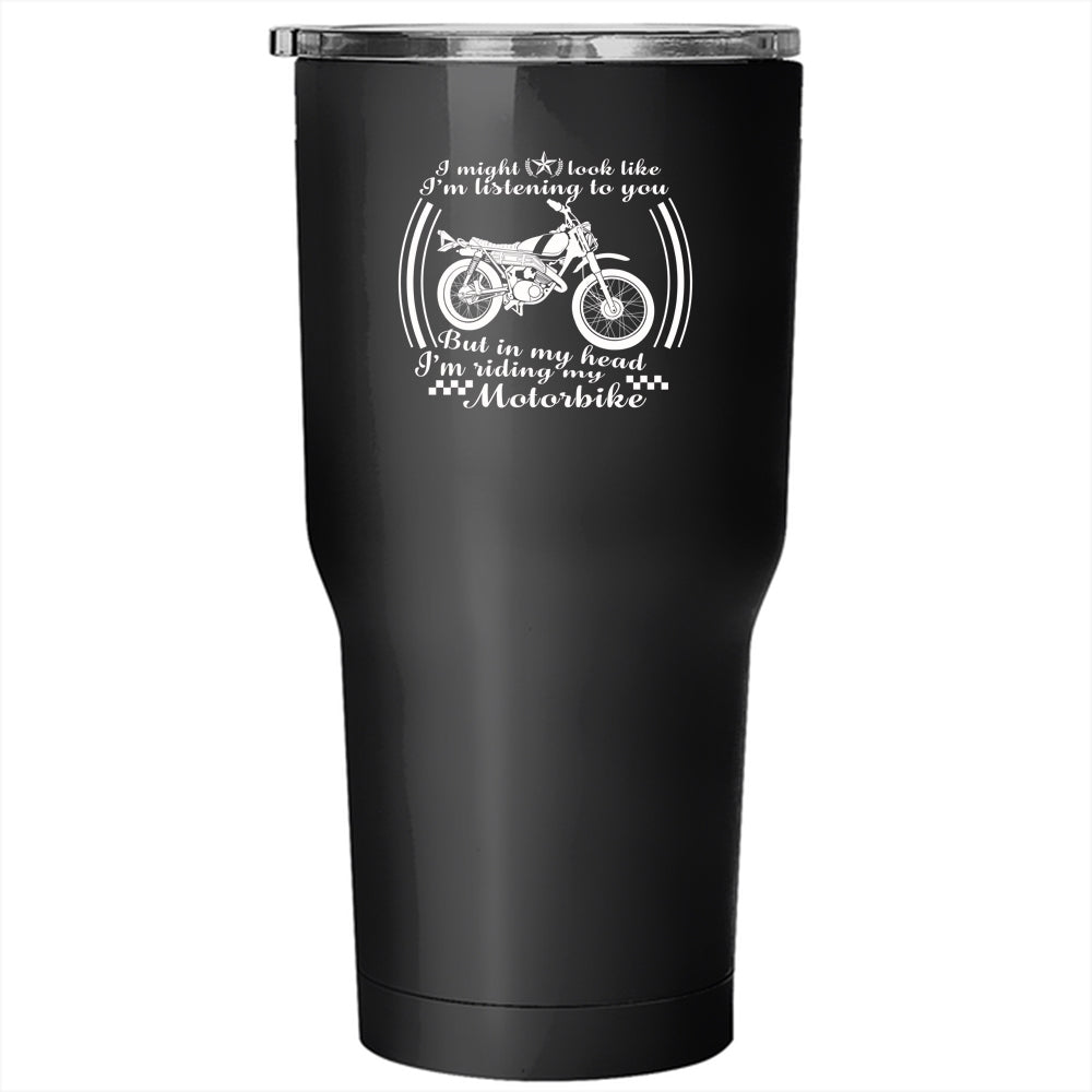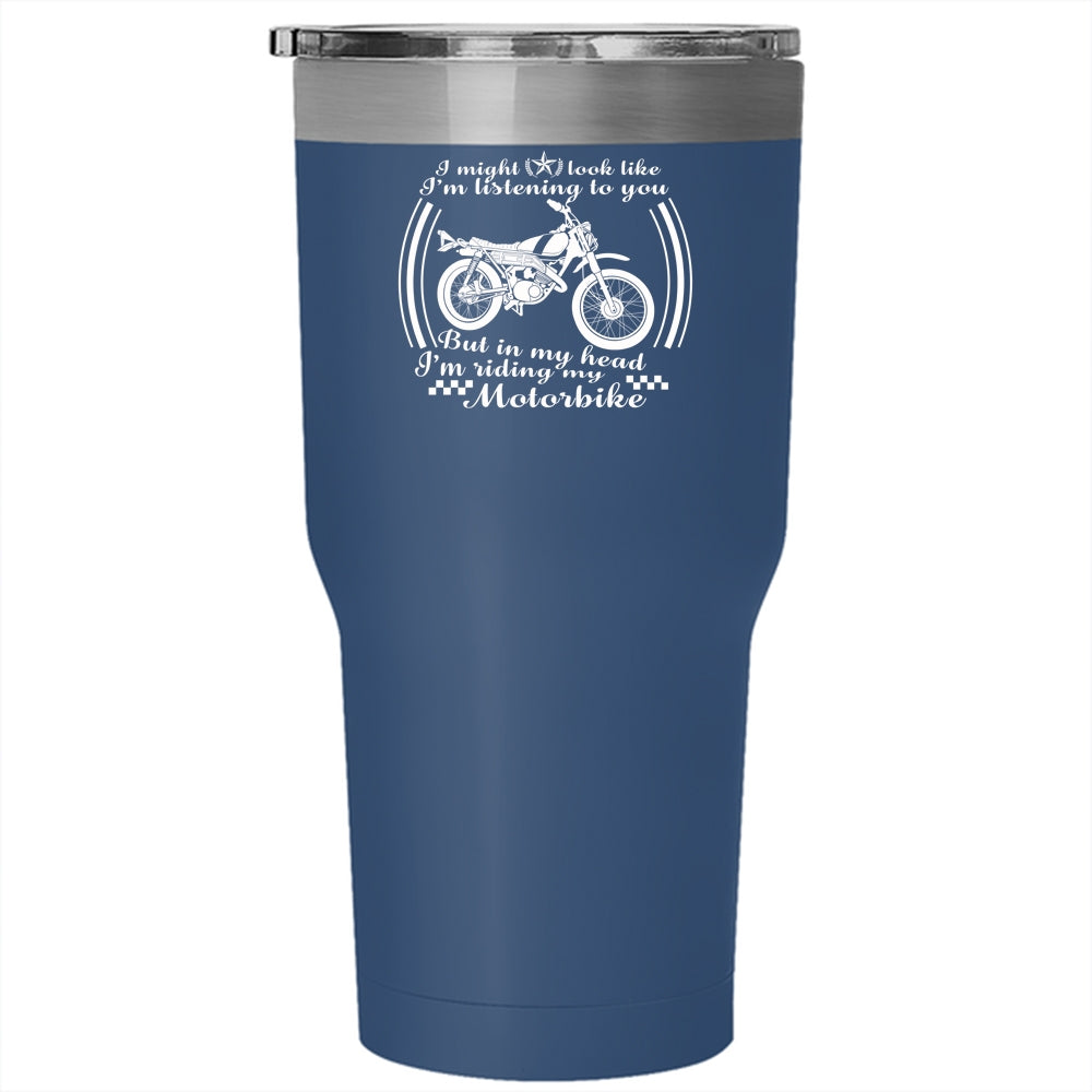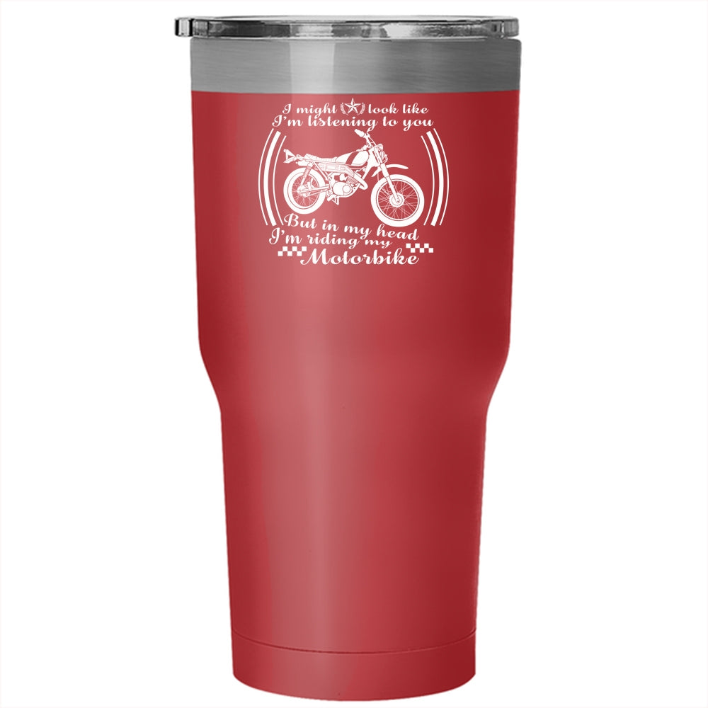 In My Head I'm Riding My Motorbike Tumbler 30 oz Stainless Steel, Cool Motorbike Travel Mug
