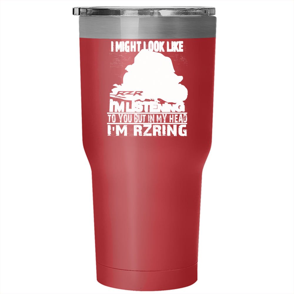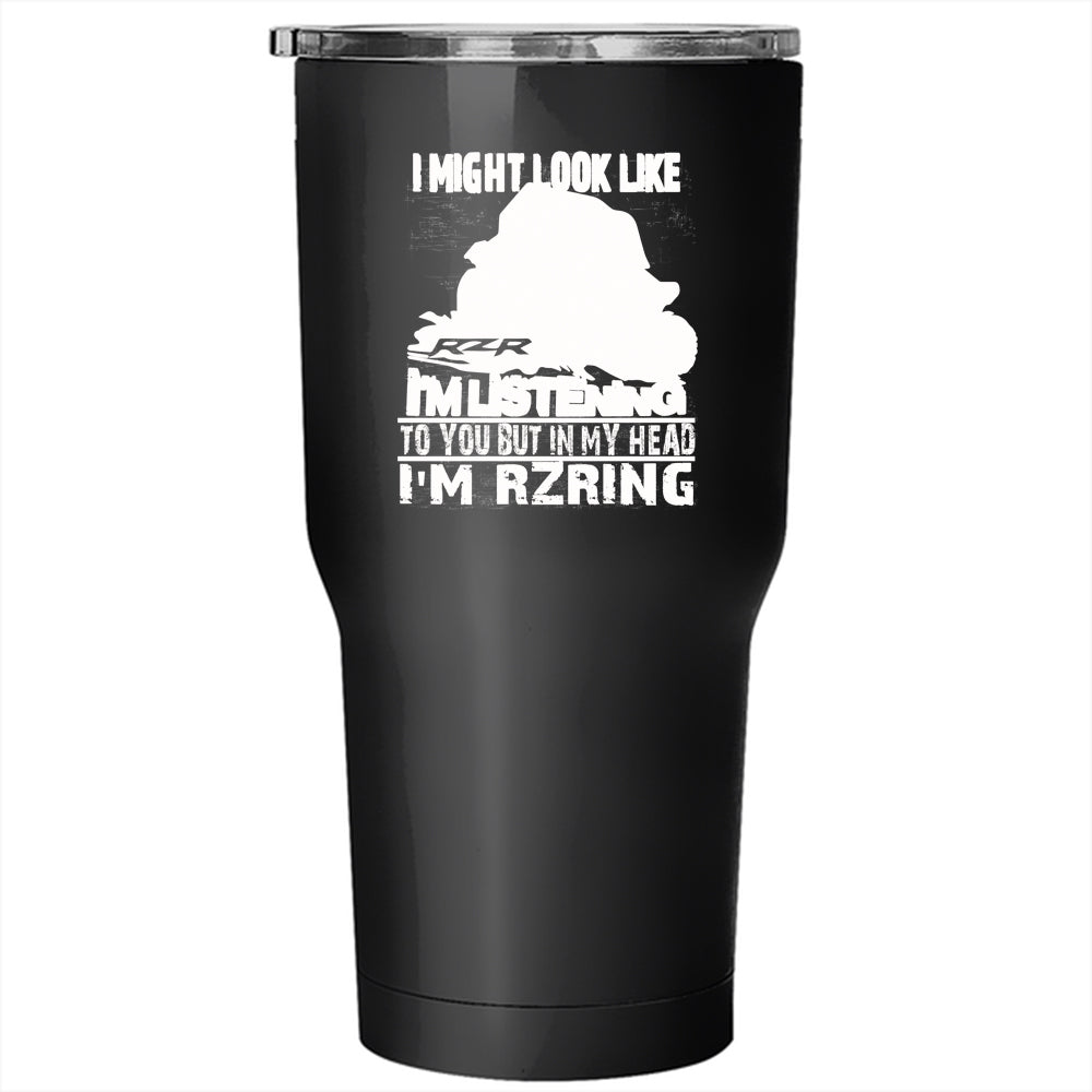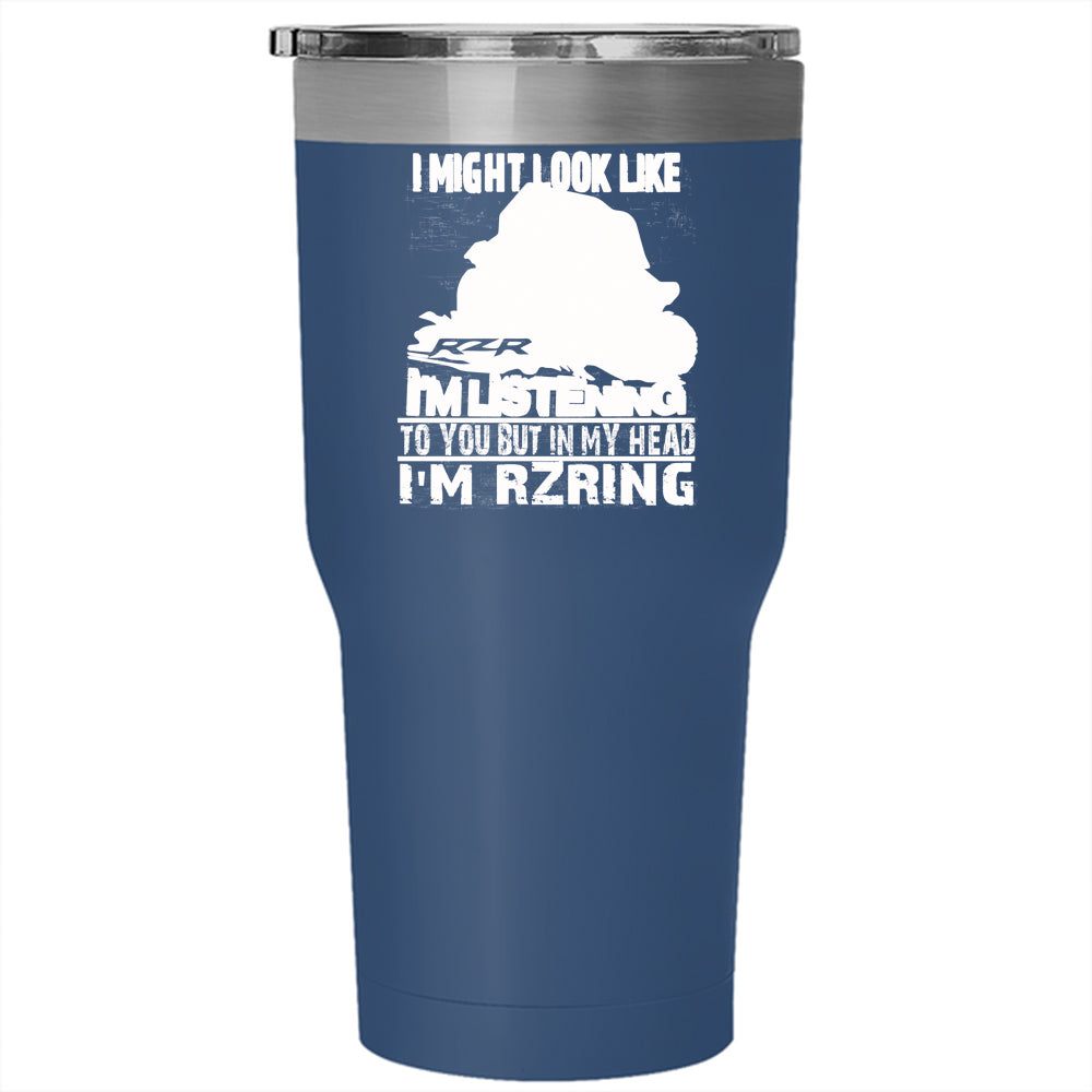In My Head I'm Rzring Tumbler 30 oz Stainless Steel, Cool Dirty Track Racing Travel Mug