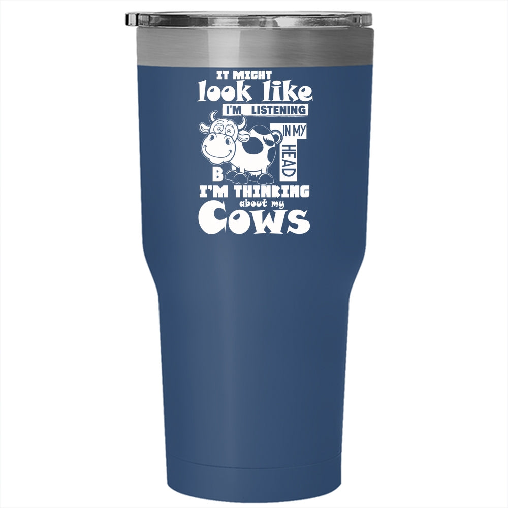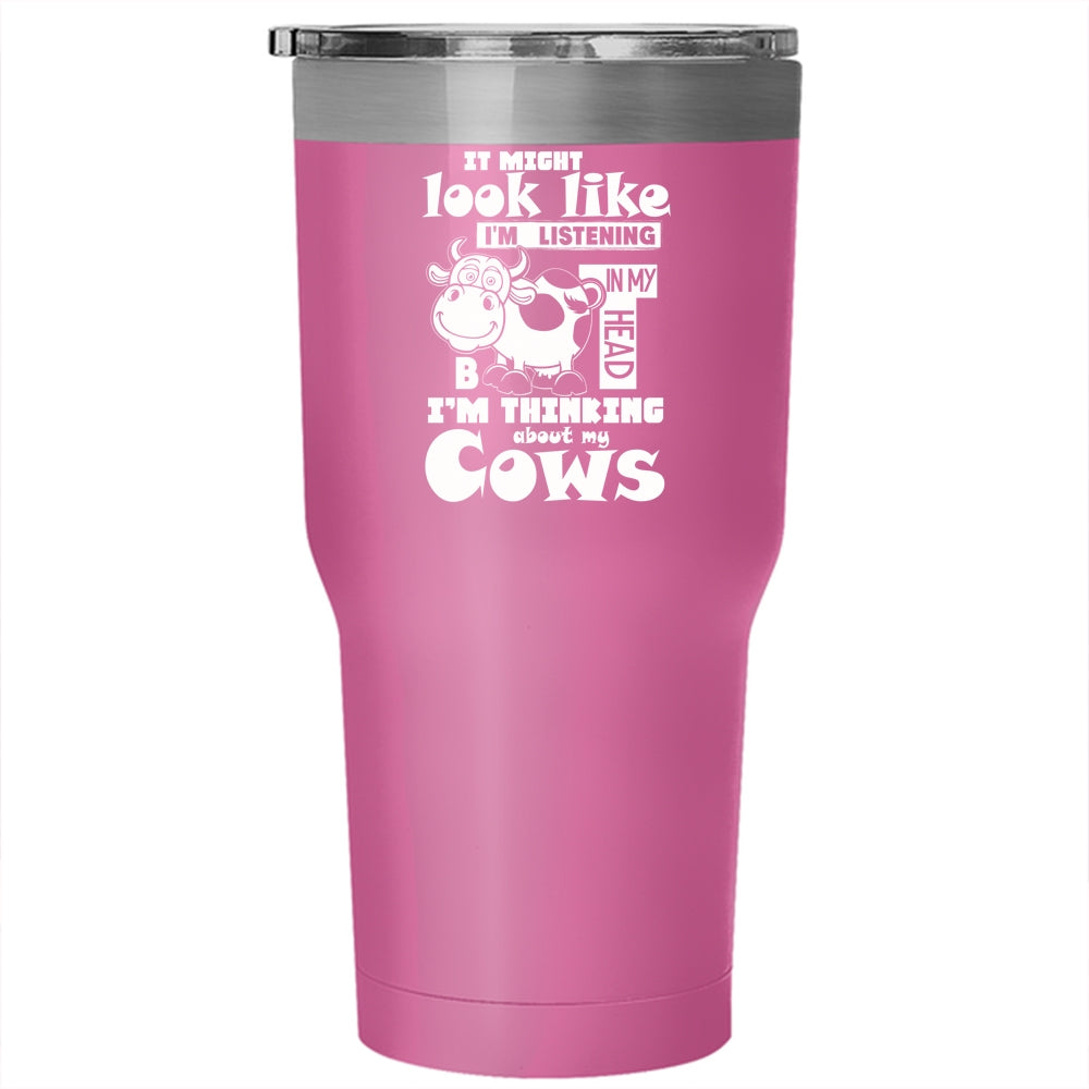 In My Head I'm Thinking About My Cows Tumbler 30 oz Stainless Steel, I Love Cows Travel Mug