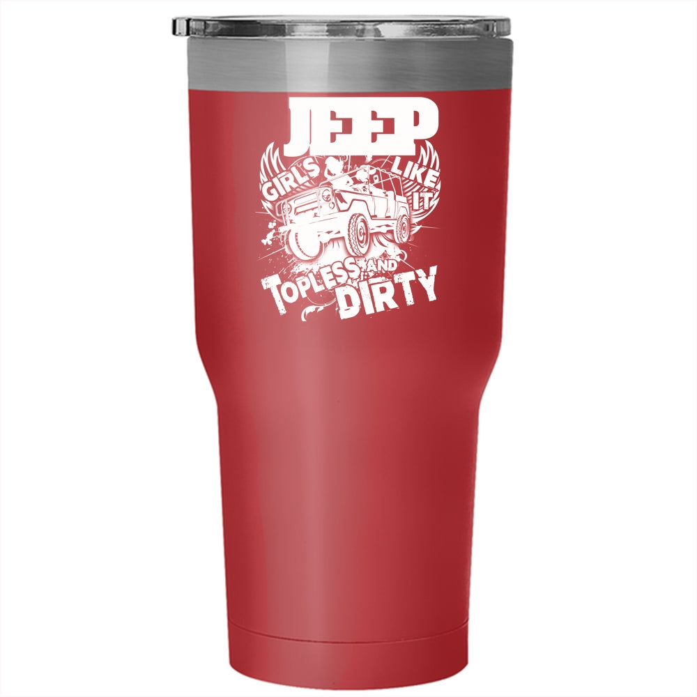 Jeep Girls Like It Topless And Dirty Tumbler 30 oz Stainless Steel, Cool Girls Travel Mug