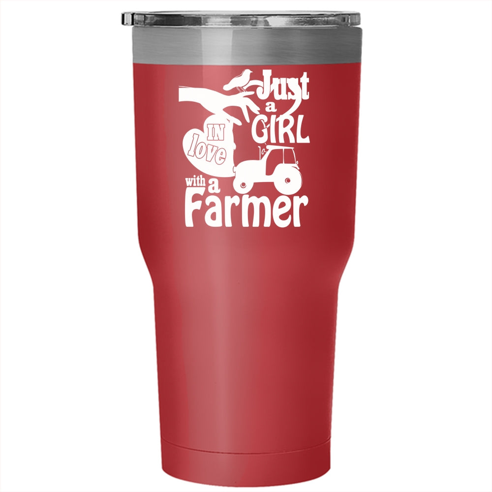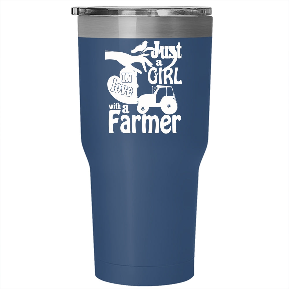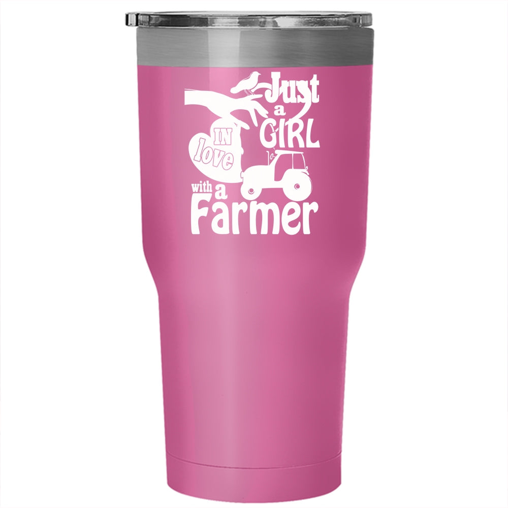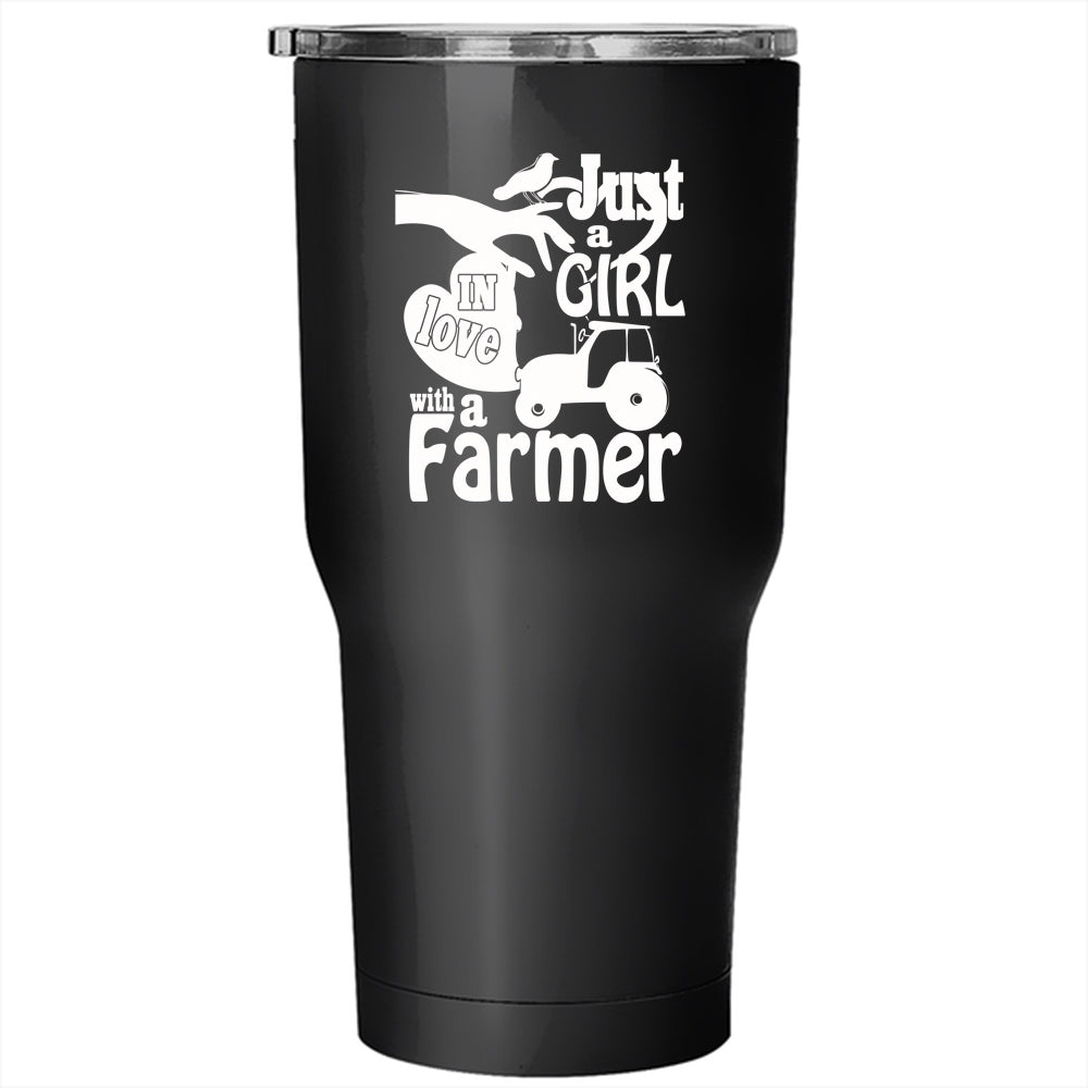 Just A Girl In Love With A Farmer Tumbler 30 oz Stainless Steel, Cute Girls Travel Mug