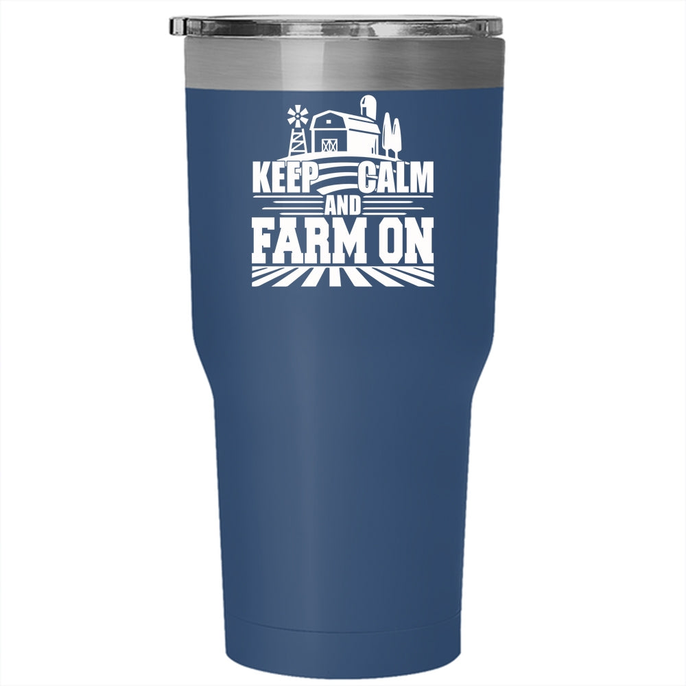 Keep Calm And Farm On Tumbler 30 oz Stainless Steel, Cool Farming Travel Mug
