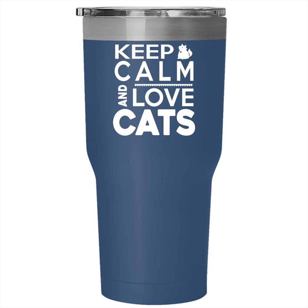 Keep Calm And Love Cats Tumbler 30 oz Stainless Steel, Funny Cat Lovers Travel Mug