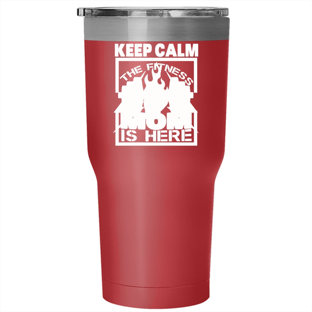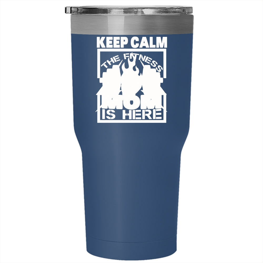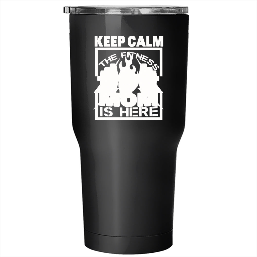 Keep Calm The Fitness Mom Is Here Tumbler 30 oz Stainless Steel, Cool Fitness Mom Travel Mug