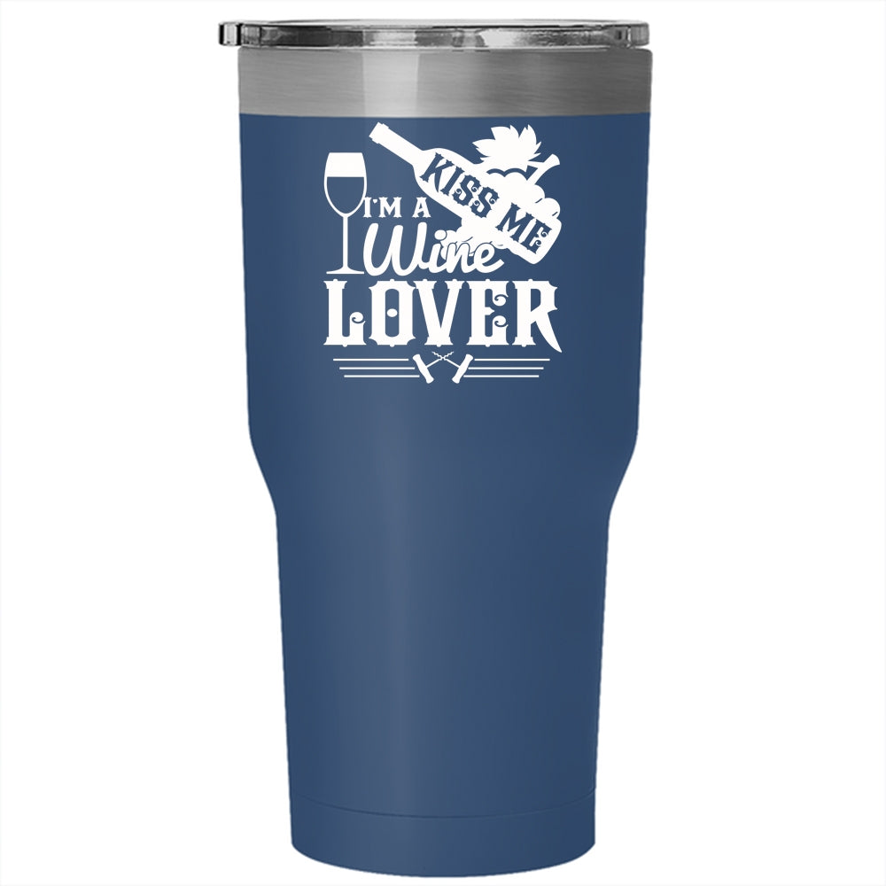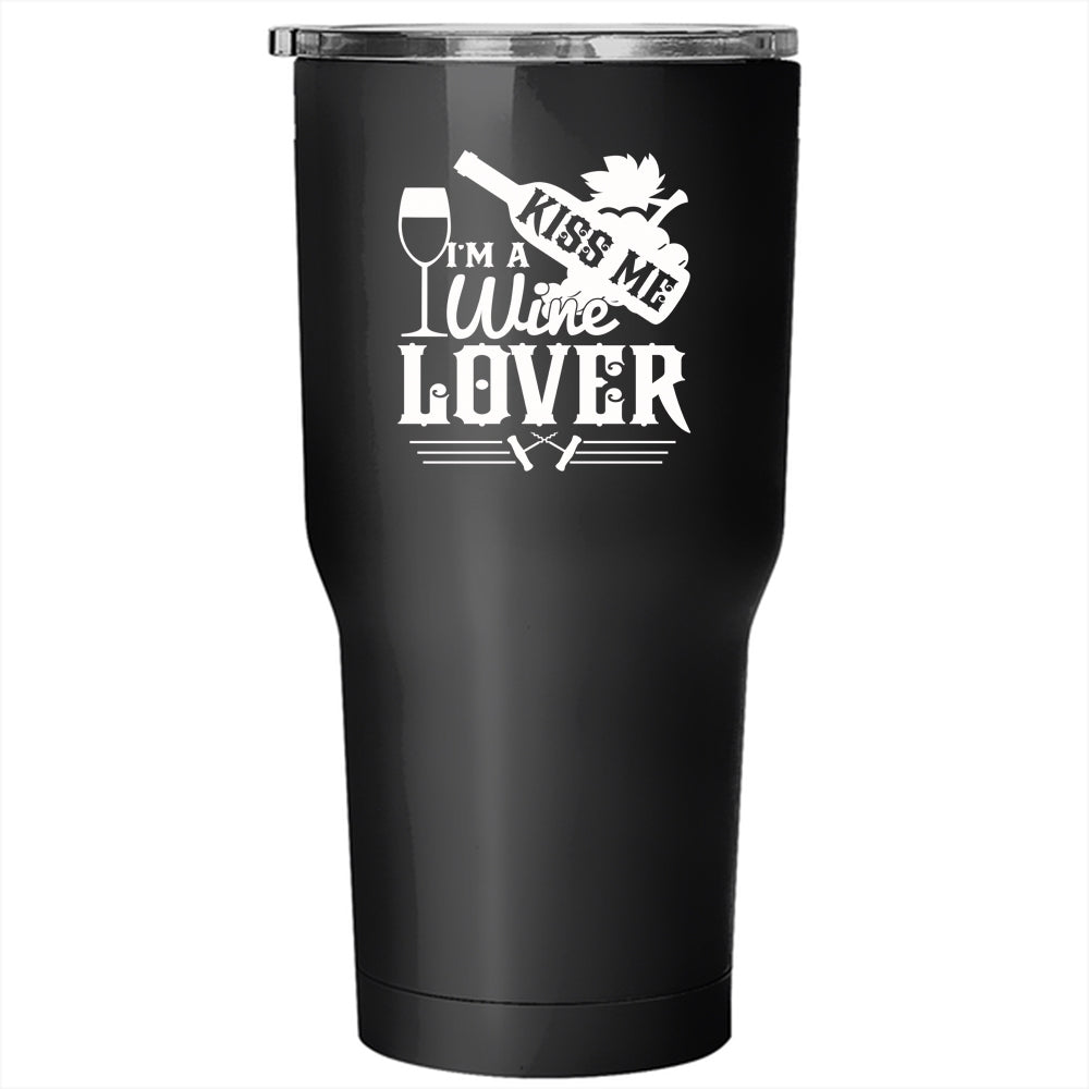 Kiss Me I'm A Wine Lover Tumbler 30 oz Stainless Steel, Cute Gift For Wine Drinker Travel Mug