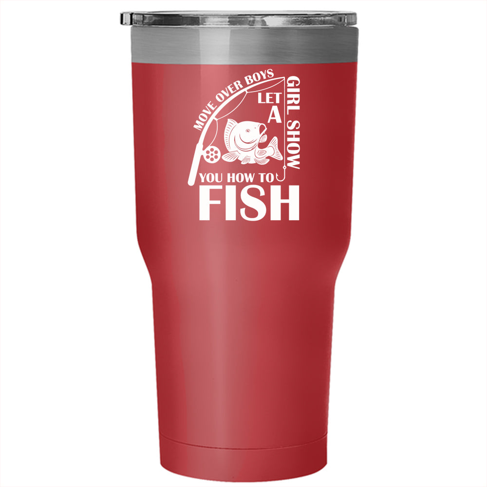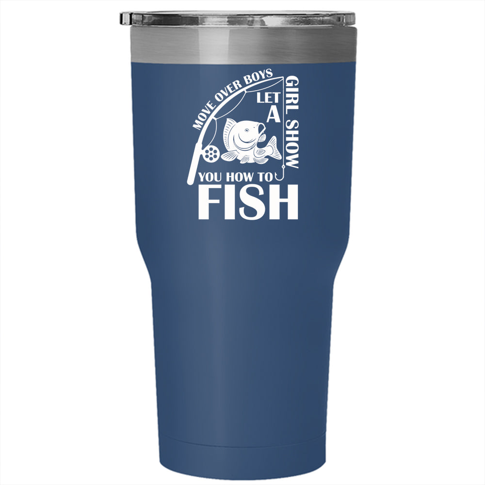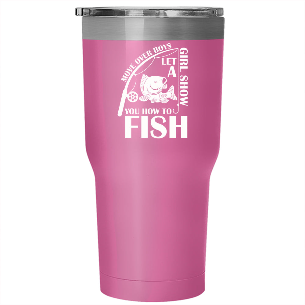 Let A Girl Show You How To Fish Tumbler 30 oz Stainless Steel, Funny Girls Travel Mug