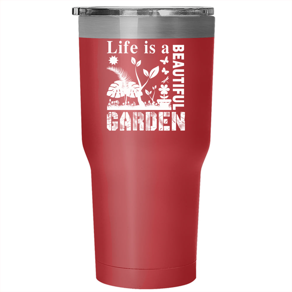 Life Is A Beautiful Garden Tumbler 30 oz Stainless Steel, Lovely Gardener Travel Mug