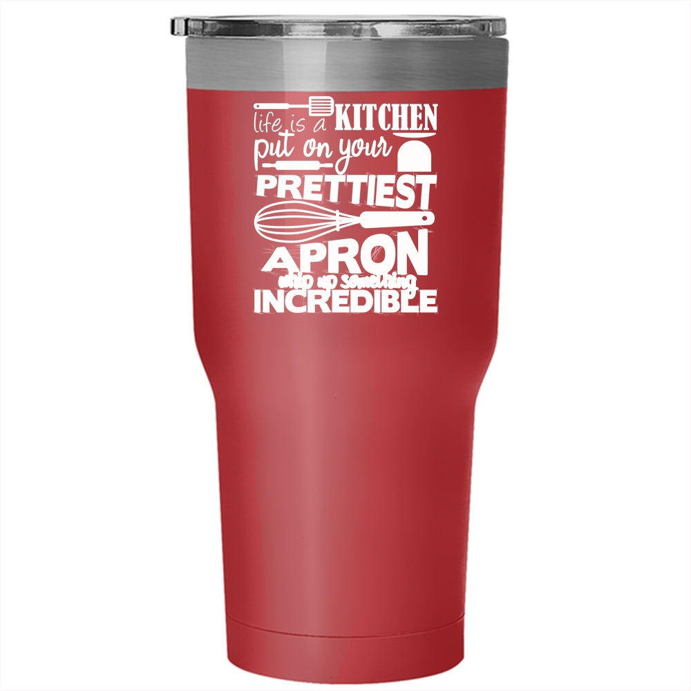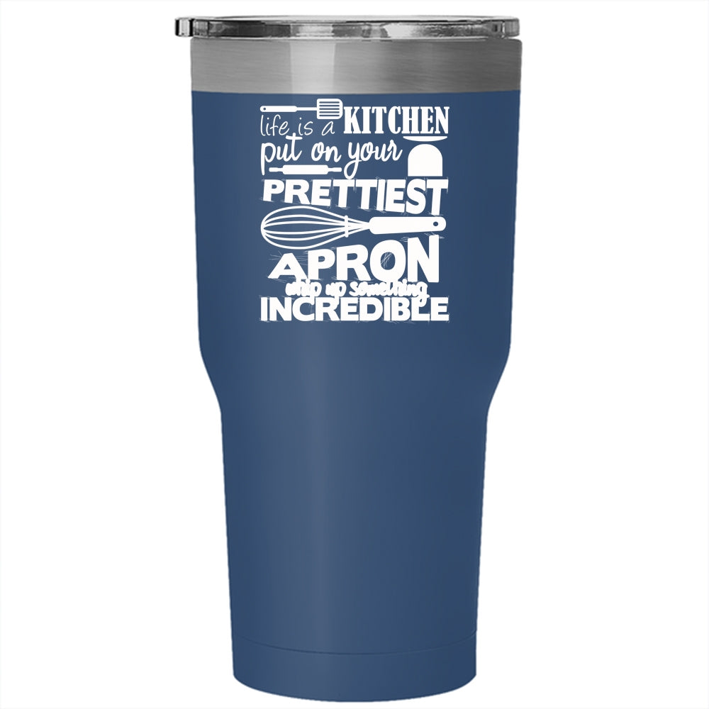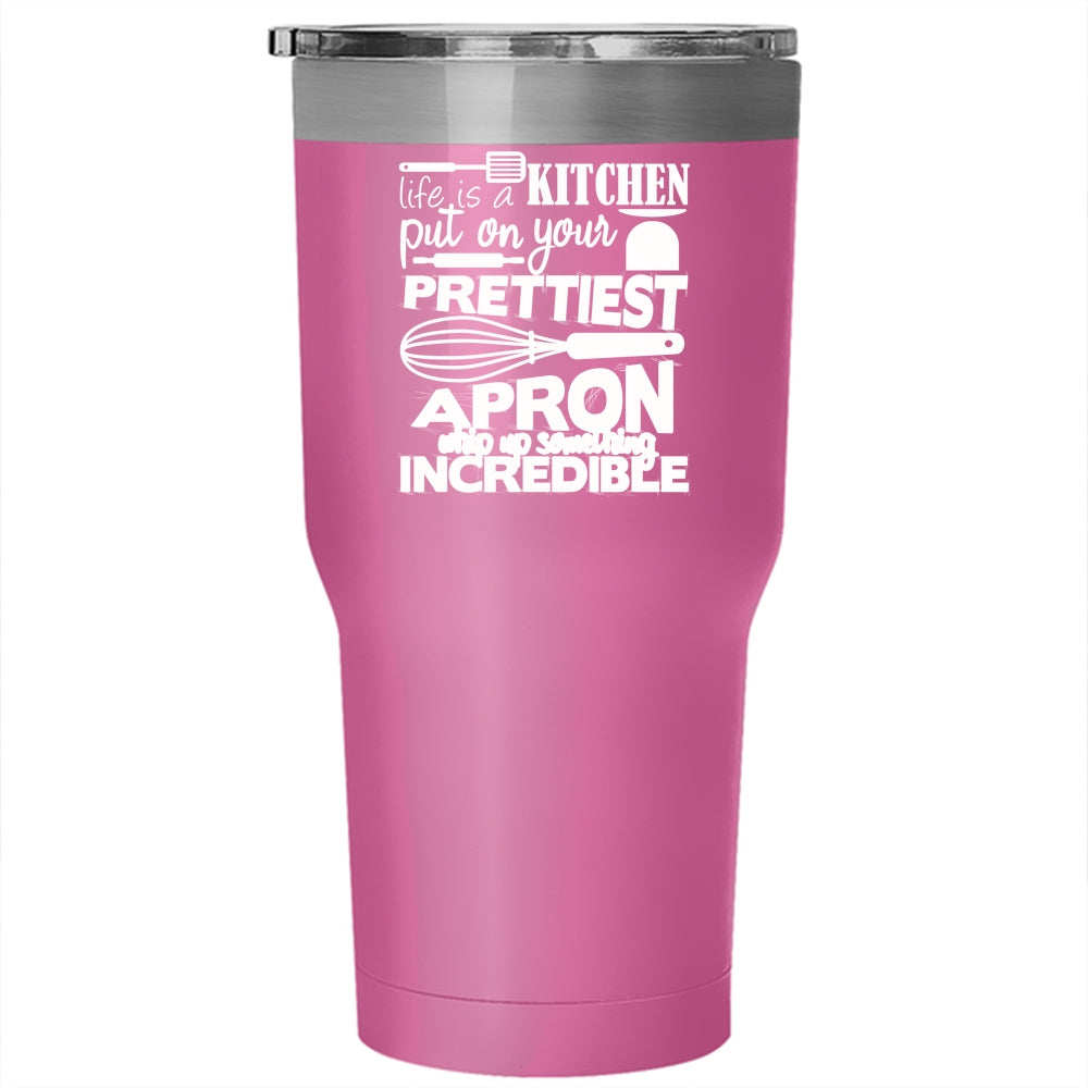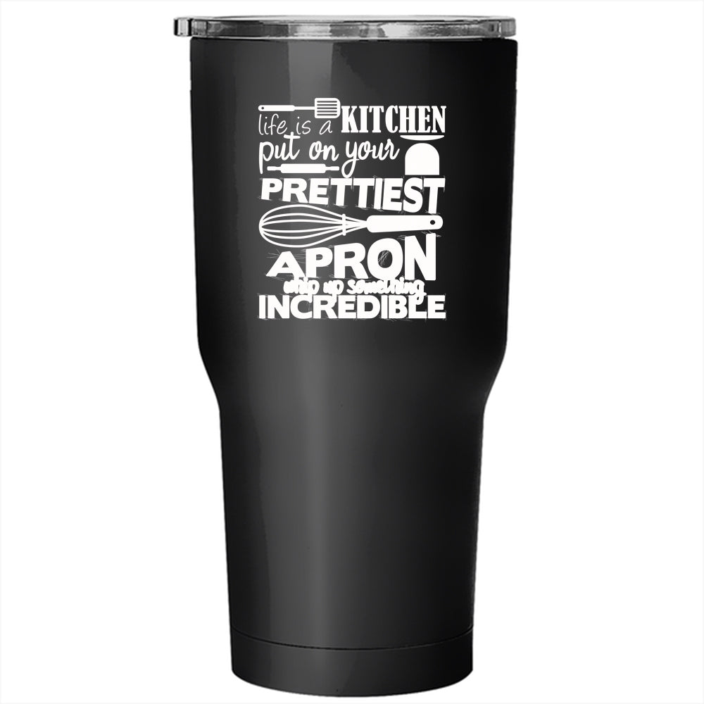 Life Is A Kitchen Put On Prettiest Apron Tumbler 30 oz Stainless Steel, Cool Chef Travel Mug