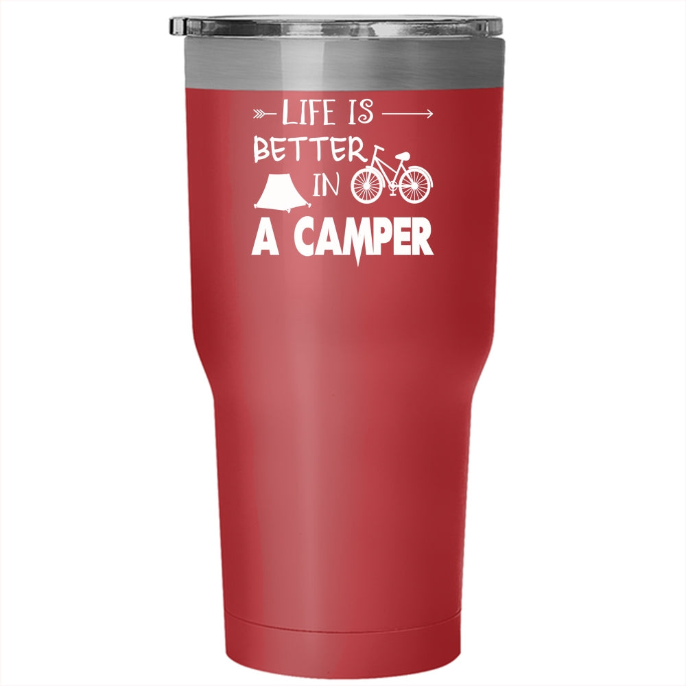 Life Is Better In A Camper Tumbler 30 oz Stainless Steel, Cool Camping Travel Mug