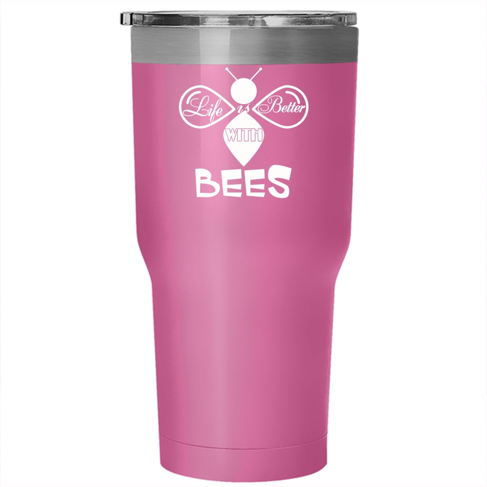 Life Is Better With Bees Tumbler 30 oz Stainless Steel, Cute Gift For Beekeeper Travel Mug