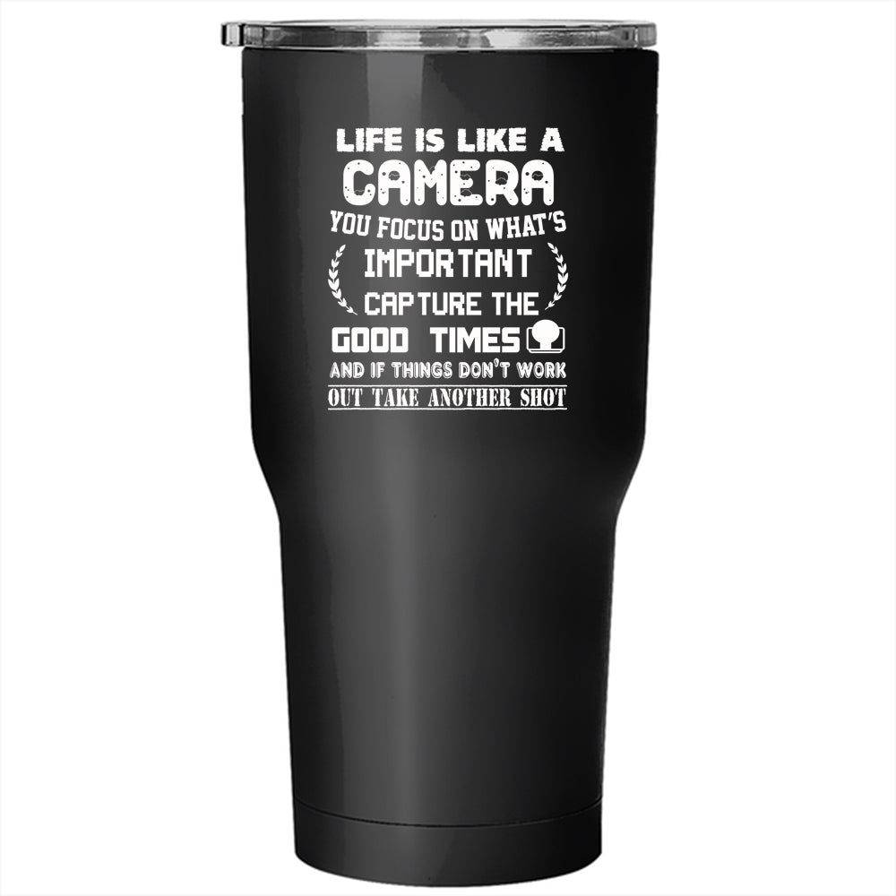 Life Is Like A Camera Tumbler 30 oz Stainless Steel, I Love Photographer Travel Mug
