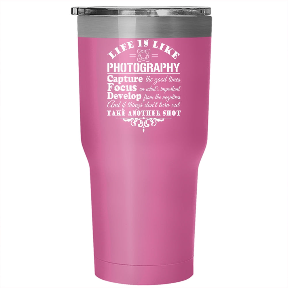 Life Is Like Photography Tumbler 30 oz Stainless Steel, Gift For Photographer Travel Mug