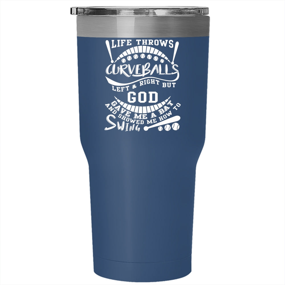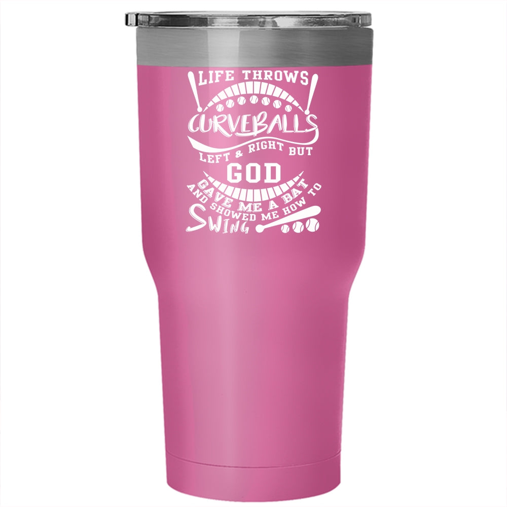 Life Throws Curveballs Left And Right Tumbler 30 oz Stainless Steel, Cool Baseball Travel Mug