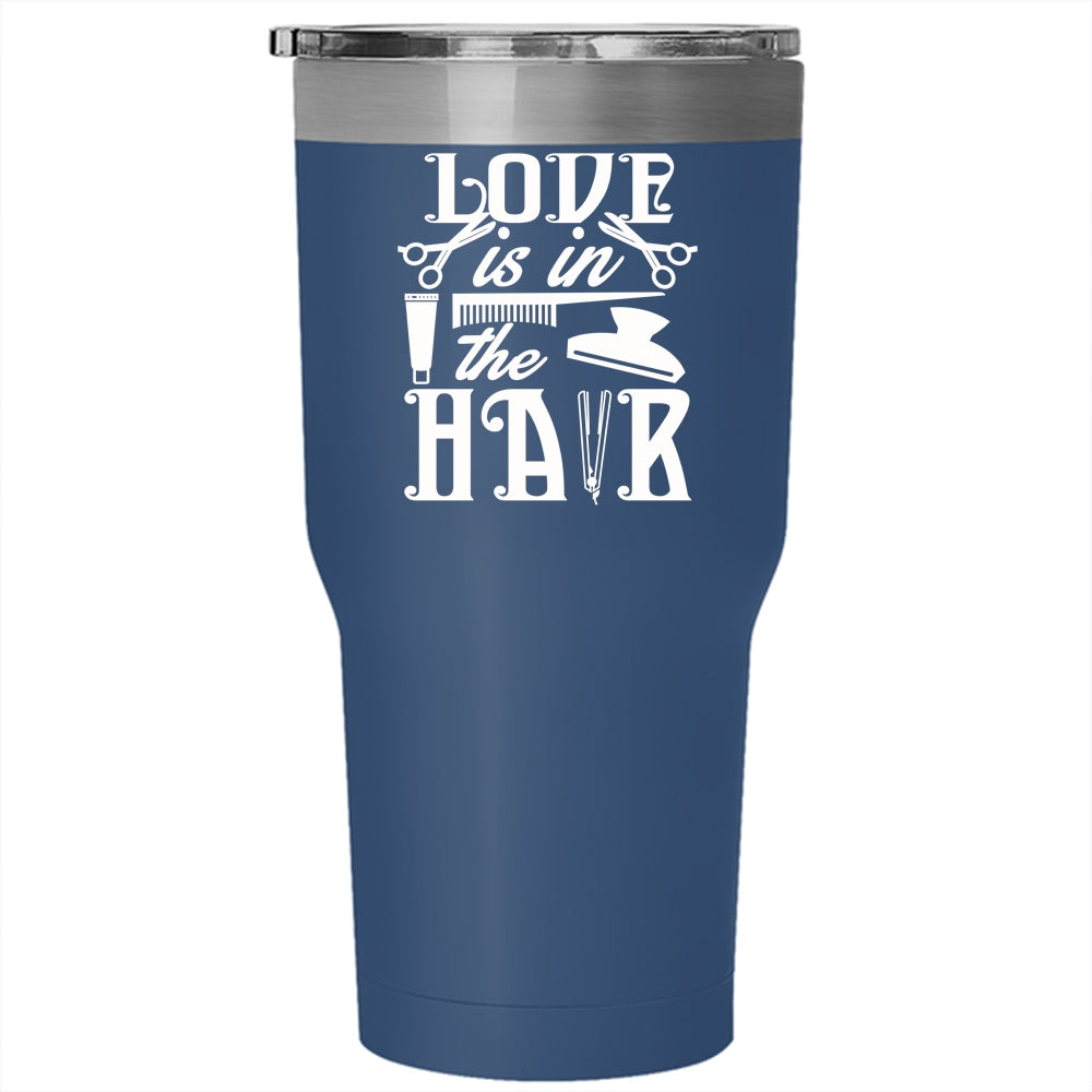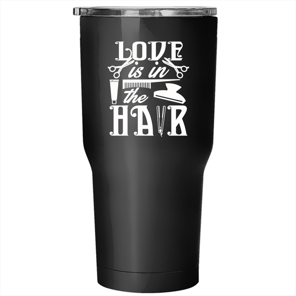 Love Is In The Hair Tumbler 30 oz Stainless Steel, Cute Hairstylist Travel Mug