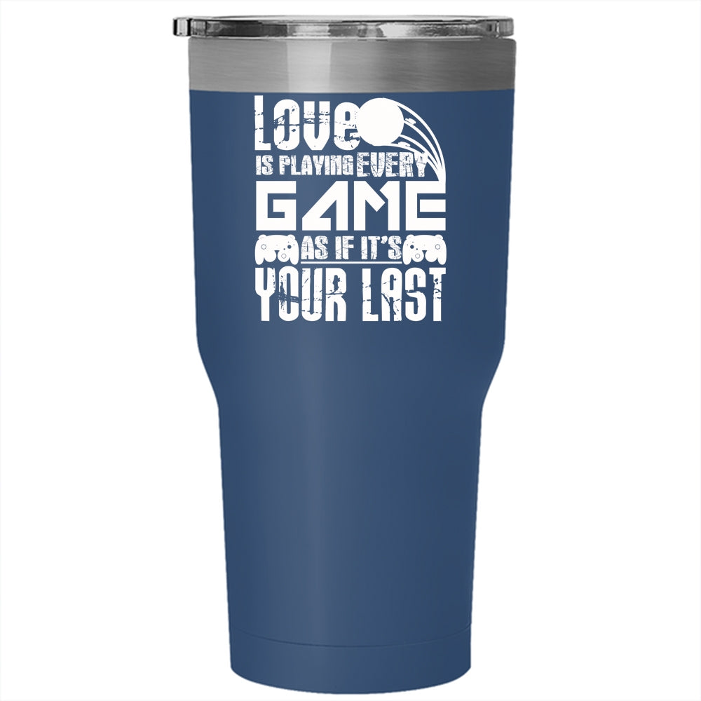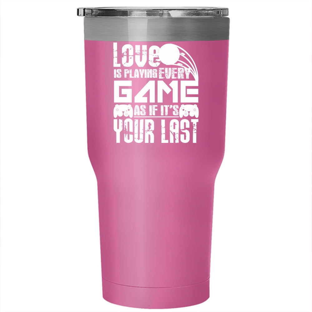 Love Is Playing Every Game Tumbler 30 oz Stainless Steel, Funny Gift For Gamers Travel Mug