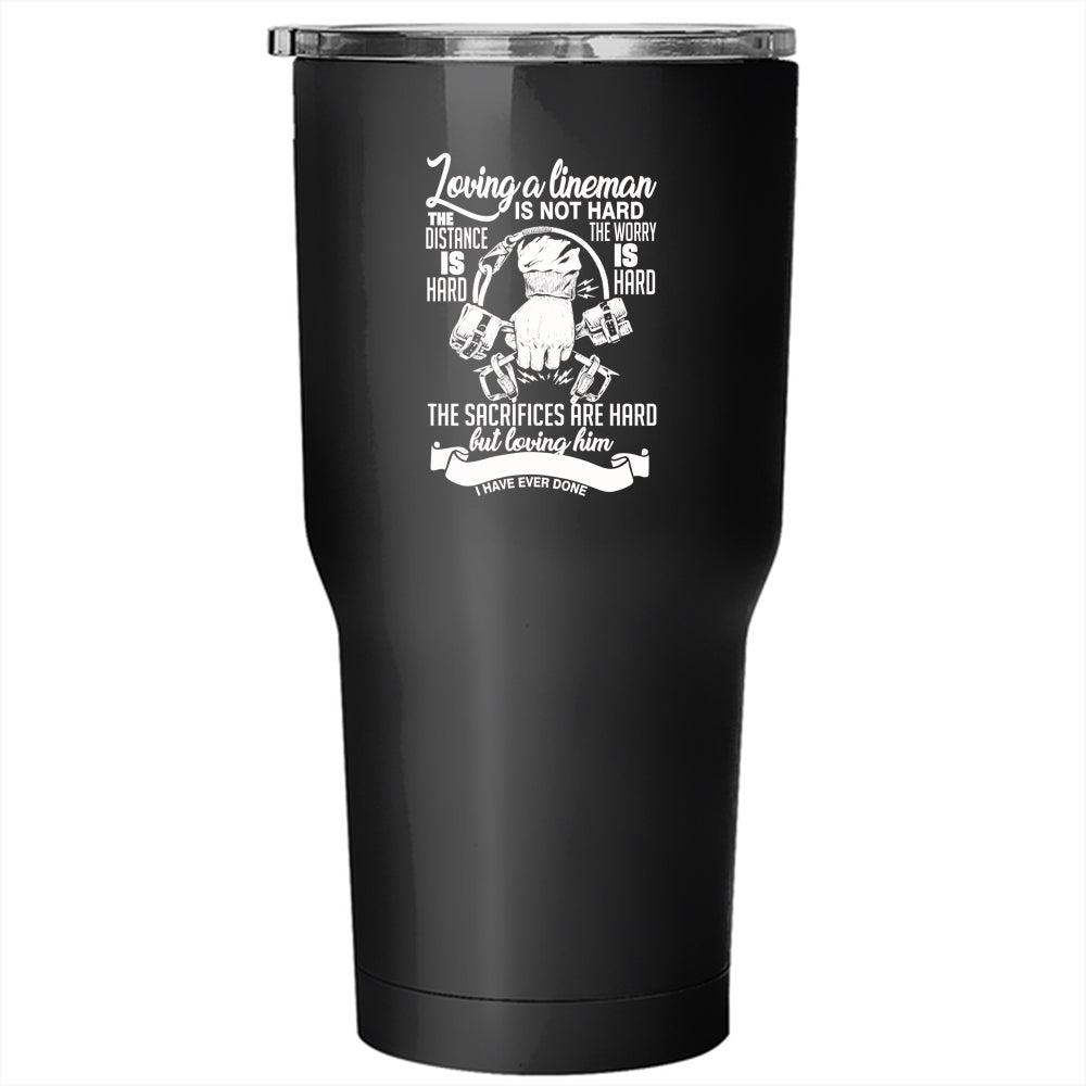 Loving A Lineman Is Not Hard Tumbler 30 oz Stainless Steel, I Love Lineman Travel Mug