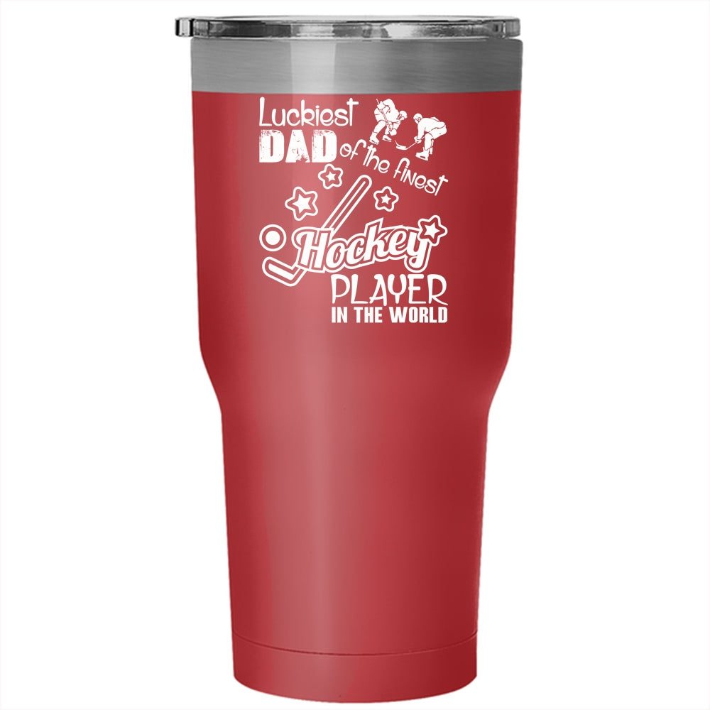 Luckiest Dad Tumbler 30 oz Stainless Steel, The Finest Hockey Player In The World Travel Mug