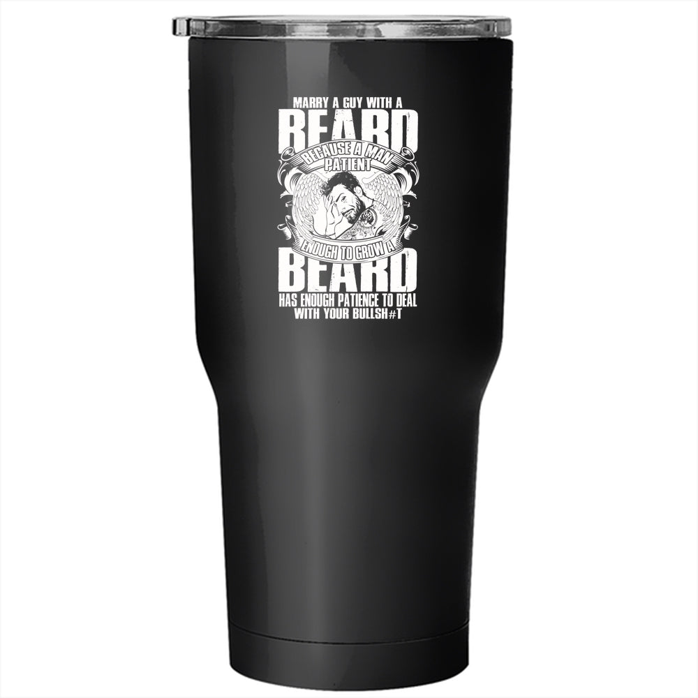 Marry A Guy With A Beard Tumbler 30 oz Stainless Steel, Cool Just Married Travel Mug