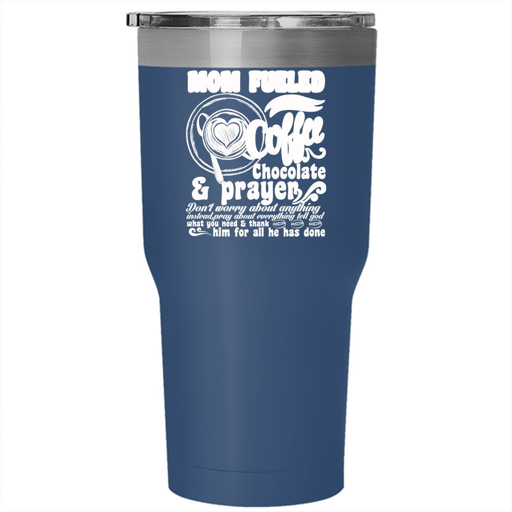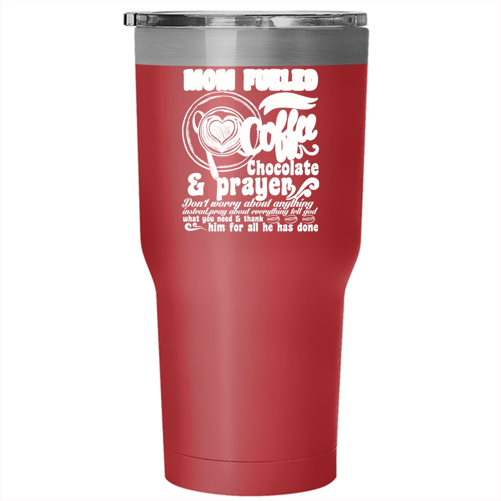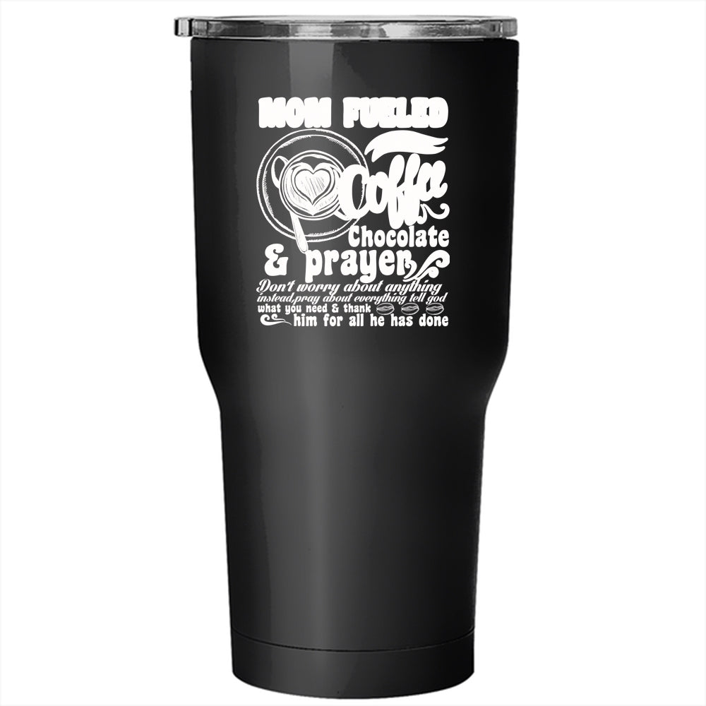 Mom Fueled By Coffee Tumbler 30 oz Stainless Steel, Chocolate And Prayer Travel Mug